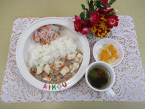 2024年6月6日(木) 公開日: 2024年6月6日更新日: 2024年6月6日著者: aikouカテゴリー: 愛光こども園, 愛光こども園給食献立 *今日の給食* ・ごはん ・麻婆豆腐 ・バンサンスー ・中華スープ ・フルーツミックス *今日のおやつ* ・牛乳 ・ツナサンド