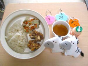 2025年9月24日(水) 公開日: 2025年9月24日更新日: 2025年9月24日著者: aikouカテゴリー: 愛光こども園, 愛光こども園給食献立 *今日の給食* ・麦ごはん ・鶏肉の唐揚げ ・キャベツの甘酢和え ・みそ汁 ・乳酸菌飲料 *今日のおやつ* ・牛乳 ・きな粉クリームサンド