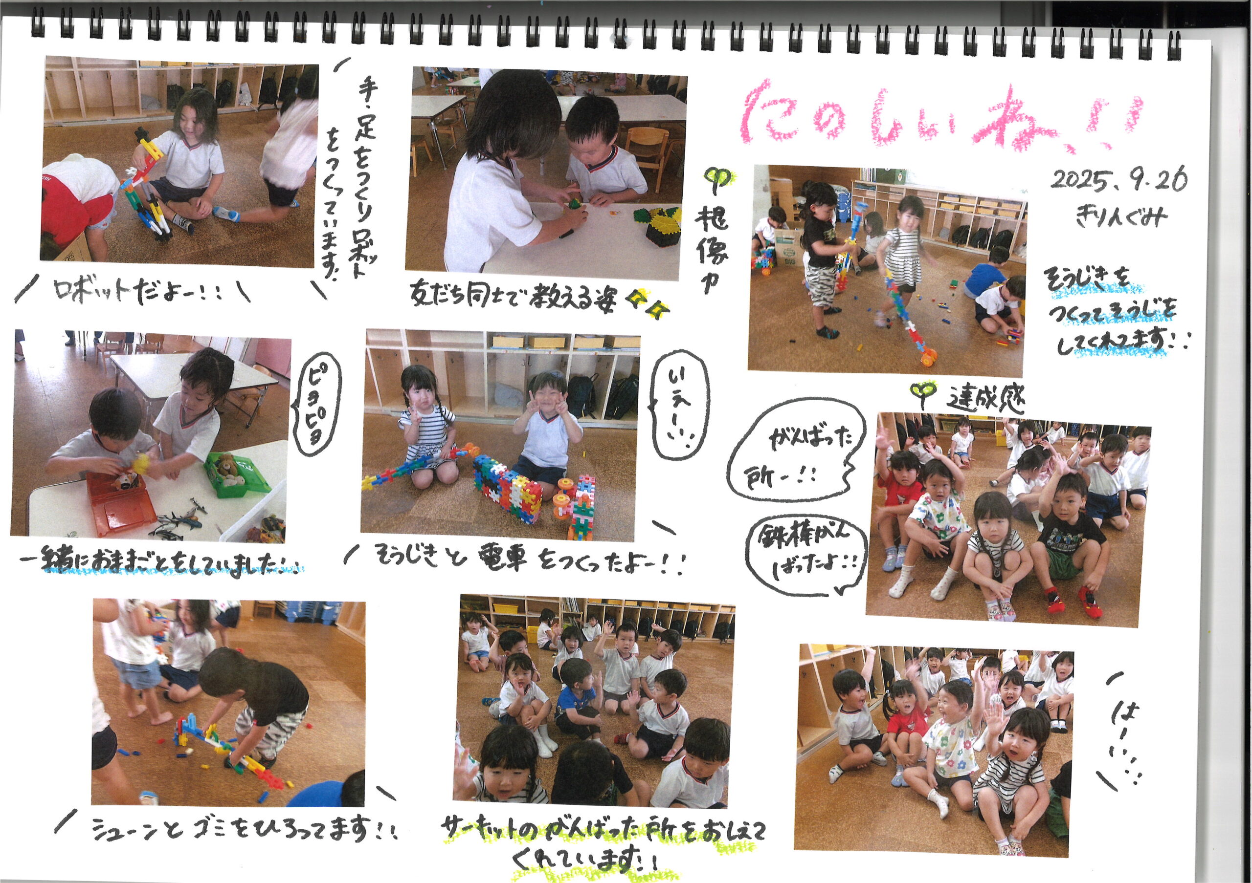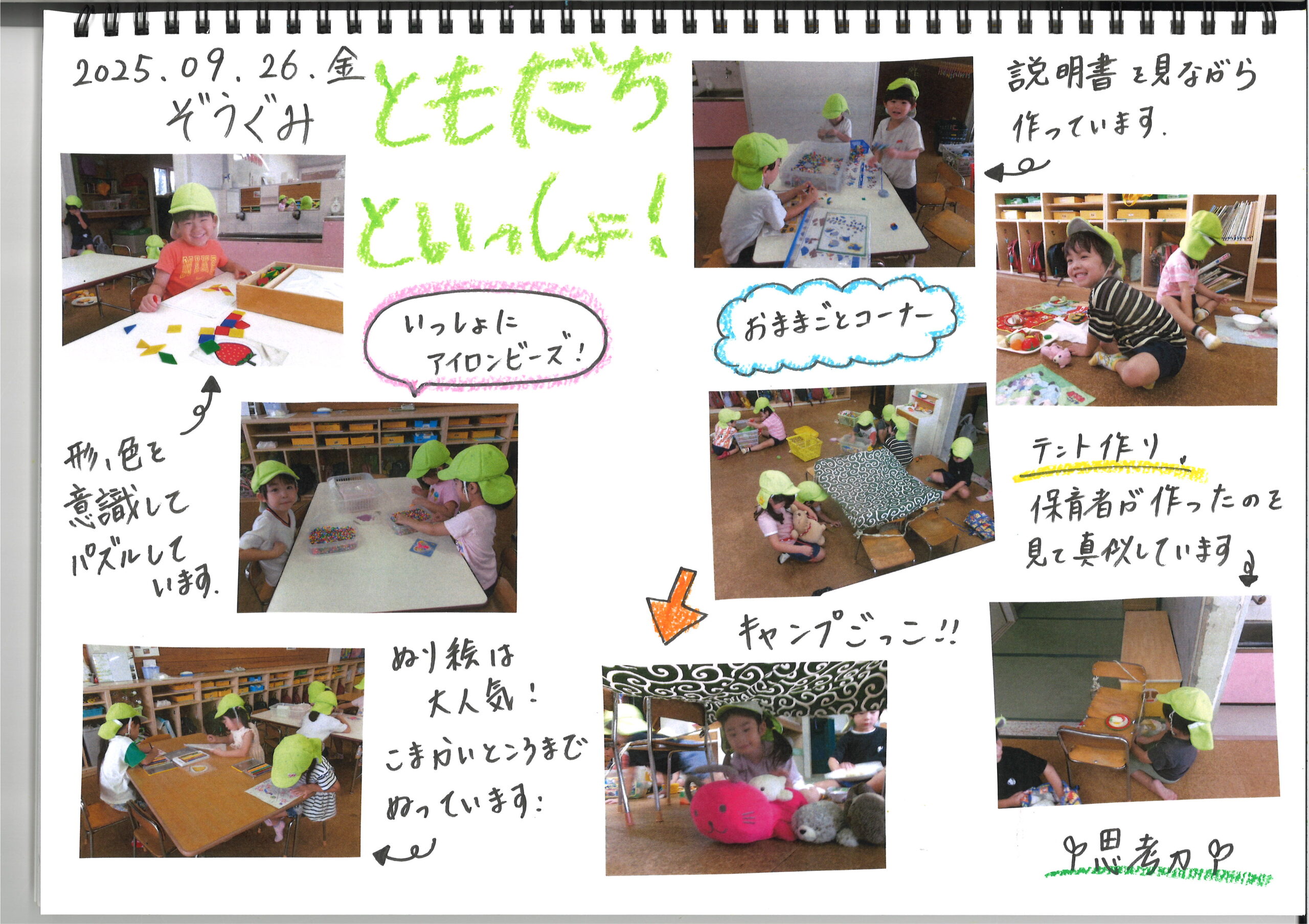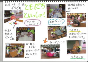9月26日(金)今日の様子 公開日: 2025年9月26日更新日: 2025年9月26日著者: kabutodaiカテゴリー: 兜台保育園園ブログ ひよこ組・りす組 うさぎ組 きりん組 ぞう組 らいおん組 関連記事 12月7日(月) 今日の様子 ひよこぐみ りすぐみ うさぎぐみ きりんぐみ らいおんぐみ 公開日: 2020年12月8日更新日: 2020年12月8日著者: kabutodaiカテゴリー: 兜台保育園園ブログ 8月27日(木)今日の様子 ひよこぐみ 「はいチーズ」 りすぐみ 「お誕生日」 「びりびりー」 うさぎぐみ 「おばけの手だぞ~」 […] 公開日: 2020年8月27日更新日: 2020年9月9日著者: kabutodaiカテゴリー: 兜台保育園園ブログ 7月26日(水)今日の様子 ひよこぐみ りすぐみ うさぎぐみ 黄グループ 赤グループ 青グループ 公開日: 2023年7月26日更新日: 2023年7月26日著者: kabutodaiカテゴリー: 兜台保育園園ブログ