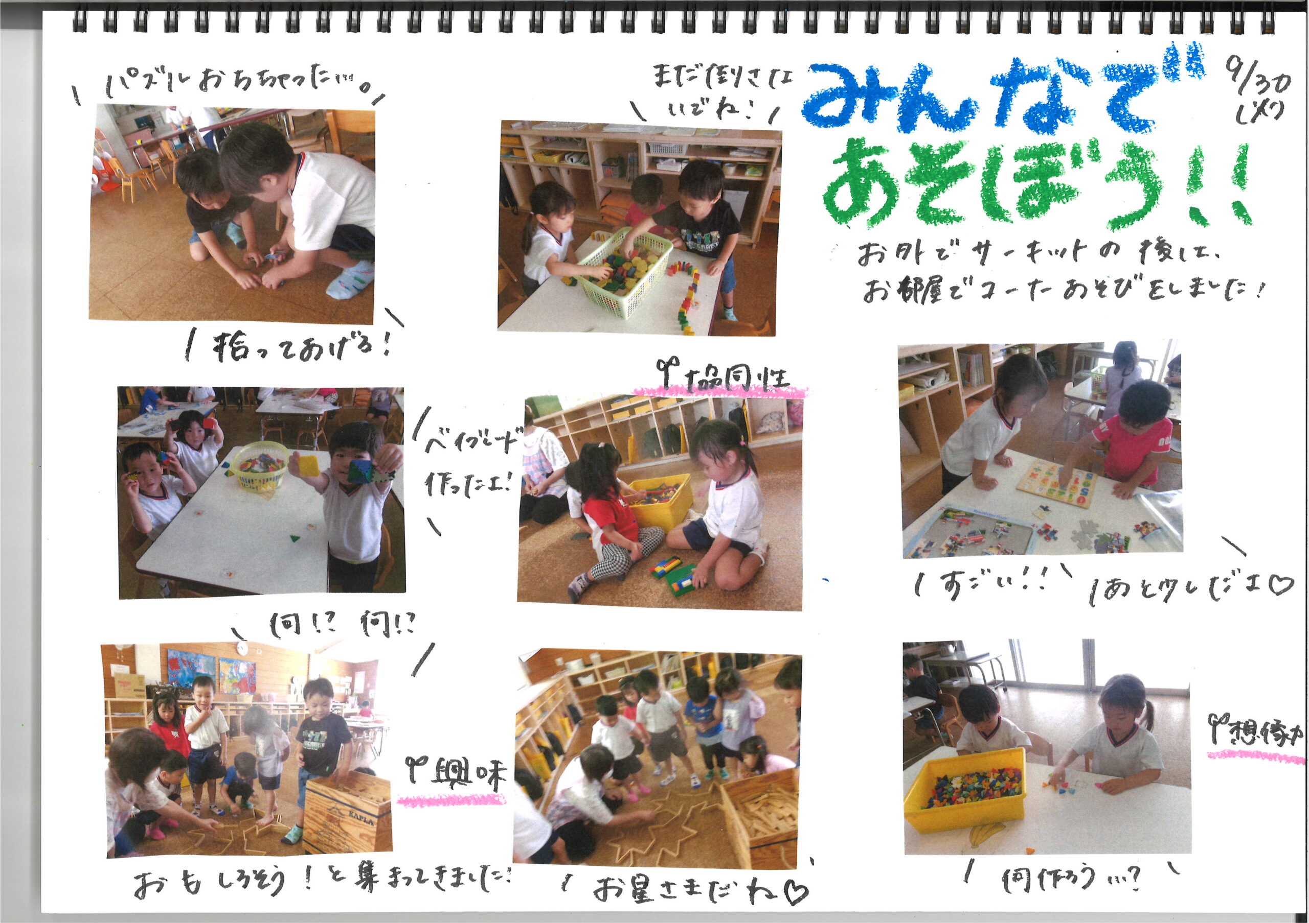 9月30日(火)今日の様子 公開日: 2025年9月30日更新日: 2025年9月30日著者: kabutodaiカテゴリー: 兜台保育園園ブログ ひよこ組・りす組 うさぎ組 きりん組 ぞう組 らいおん組 関連記事 8月18日(火) 今日の様子 ひよこぐみ 「どっちにしようかな」 「一緒にボールで遊ぼ~」 りすぐみ 「カンカンカンカン どうぞ」 「ゆっくり ゆっくり」 うさぎぐ […] 公開日: 2020年8月18日更新日: 2020年8月18日著者: kabutodaiカテゴリー: 兜台保育園園ブログ 10月11日(金) 今日の様子 きりん組 ぞう組 らいおん組 公開日: 2024年10月11日更新日: 2024年10月11日著者: kabutodaiカテゴリー: 兜台保育園園ブログ 7月7日(金)今日の様子 ひよこぐみ りすぐみ うさぎぐみ きりんぐみ ぞうぐみ らいおんぐみ 公開日: 2023年7月7日更新日: 2023年7月7日著者: kabutodaiカテゴリー: 兜台保育園園ブログ