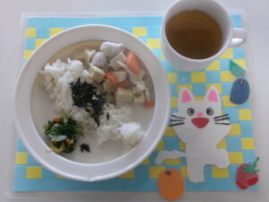 9月30日(火) 公開日: 2025年9月30日更新日: 2025年9月30日著者: kabutodaiカテゴリー: 兜台保育園給食献立 主食・・・ごはん 主菜・・・高野豆腐と野菜の煮物 副菜・・・青菜のお浸し お汁・・・みそ汁 ひじきふりかけ 関連記事 1月18日(金) 主食・・・ごはん 主菜・・・ローストチキン 副菜・・・マカロニサラダ 汁・・・パンプキンスープ 公開日: 2019年1月18日更新日: 2019年1月18日著者: kabutodaiカテゴリー: 兜台保育園, 兜台保育園給食献立, 未分類 5月14日(水) 主食・・・麦ごはん 主菜・・・八宝菜 副菜・・・揚げぎょうざ お汁・・・わかめスープ 公開日: 2025年5月14日更新日: 2025年5月14日著者: kabutodaiカテゴリー: 兜台保育園給食献立 28 10月28日(月) 主食・・・ごはん 主菜・・・鶏肉の唐揚げ 副菜・・・マカロニサラダ お汁・・・根菜みそ汁 公開日: 2019年10月28日更新日: 2019年10月28日著者: kabutodaiカテゴリー: 兜台保育園給食献立