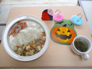 2025年10月3日(金) 公開日: 2025年10月3日更新日: 2025年10月3日著者: aikouカテゴリー: 愛光こども園, 愛光こども園給食献立 *今日の給食* ・ごはん ・高野麻婆 ・バンサンスー ・中華スープ *今日のおやつ* ・お茶 ・カル鉄ぶどうゼリー ・アンパンマンせんべい