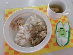 10月8日(水) 公開日: 2025年10月8日更新日: 2025年10月8日著者: kabutodaiカテゴリー: 兜台保育園給食献立 主食・・・麦ごはん 主菜・・・すき焼き煮 副菜・・・さくら漬け お汁・・・みそ汁 関連記事 24 10月24日(水) 主食・・・麦ごはん 主菜・・・ちくわの二色揚げ 副菜・・・マカロニサラダ お汁・・・みそ汁 ふりかけ・・・のり佃煮 公開日: 2018年10月24日更新日: 2018年10月24日著者: kabutodaiカテゴリー: 兜台保育園, 兜台保育園給食献立 10月23日(水) 主食・・・麦ご飯 主菜・・・高野とひじきの鶏つくね焼き 副菜・・・マカロニサラダ お汁・・・みそ汁 公開日: 2024年10月23日更新日: 2024年10月23日著者: kabutodaiカテゴリー: 兜台保育園給食献立 4月5日(金) 主食・・・ごはん 主菜・・・すき焼き煮 副菜・・・さくら漬け お汁・・・みそ汁 公開日: 2024年4月5日更新日: 2024年4月5日著者: kabutodaiカテゴリー: 兜台保育園給食献立