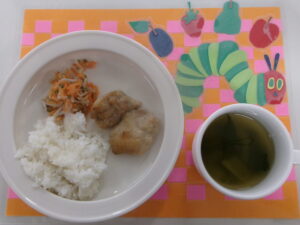 10月10日(金) 公開日: 2025年10月10日更新日: 2025年10月10日著者: kabutodaiカテゴリー: 兜台保育園給食献立 主食・・・ごはん 主菜・・・ローストチキン 副菜・・・甘酢和え お汁・・・みそ汁 関連記事 4月5日(火) 主食・・・ごはん 主菜・・・鮭の塩焼き 副菜・・・ひじき金平 お汁・・・根菜みそ汁 公開日: 2022年4月5日更新日: 2022年4月5日著者: kabutodaiカテゴリー: 兜台保育園, 兜台保育園給食献立 4月12日(金) 主食・・・ごはん 主菜・・・ビーフシチュー 副菜・・・ツナの海藻サラダ ふりかけ・・・じゃこゆかりふりかけ 公開日: 2024年4月12日更新日: 2024年4月12日著者: kabutodaiカテゴリー: 兜台保育園給食献立 19 4月19日(火) 主食・・・ごはん 主菜・・・鶏のマーマレード焼き 副菜・・・ひじきのポテトサラダ お汁・・・コンソメスープ 公開日: 2022年4月19日更新日: 2022年4月19日著者: kabutodaiカテゴリー: 兜台保育園給食献立