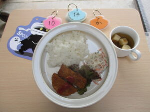2025年10月14日(火) 公開日: 2025年10月14日更新日: 2025年10月14日著者: aikouカテゴリー: 愛光こども園, 愛光こども園給食献立 *今日の給食* ・ごはん ・ミンチカツ ・春雨マヨサラダ ・みそ汁 *今日のおやつ* ・お茶 ・フルーチェ
