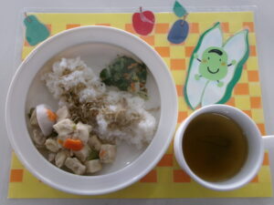 10月15日(水) 公開日: 2025年10月15日更新日: 2025年10月15日著者: kabutodaiカテゴリー: 兜台保育園給食献立 主食・・・麦ごはん 主菜・・・高野豆腐と野菜の煮物 副菜・・・青菜のお浸し お汁・・・みそ汁 じゃこふりかけ 関連記事 12月9日(水) 主食・・・麦ごはん 主菜・・・鰆のマヨドレ焼き 副菜・・・切り干しサラダ 汁物・・・根菜汁 公開日: 2020年12月9日更新日: 2020年12月9日著者: kabutodaiカテゴリー: 兜台保育園給食献立 1月23日(月) 主食・・・ごはん 主菜・・・ローストチキン 副菜・・・マカロニサラダ お汁・・・みそ汁 公開日: 2023年1月23日更新日: 2023年1月23日著者: kabutodaiカテゴリー: 兜台保育園給食献立 4月16日(火) 主菜・・・鮭のマヨドレ焼き 副菜・・・キャベツの甘酢和え お汁・・・みそ汁 公開日: 2024年4月16日更新日: 2024年4月16日著者: kabutodaiカテゴリー: 兜台保育園給食献立
