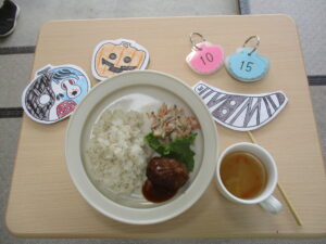 2025年10月15日(水) 公開日: 2025年10月15日更新日: 2025年10月15日著者: aikouカテゴリー: 愛光こども園, 愛光こども園給食献立 *今日の給食* ・麦ごはん ・デミソースハンバーグ ・ごぼうサラダ ・コンソメスープ *今日のおやつ* ・牛乳 ・オレンジ ・星たべよ