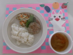 10月16日(木) 公開日: 2025年10月16日更新日: 2025年10月16日著者: kabutodaiカテゴリー: 兜台保育園給食献立 主食・・・ごはん 主菜・・・デミソースハンバーグ 副菜・・・ごぼうサラダ お汁・・・コンソメスープ 関連記事 3月13日(木) 主食・・・ポークカレーライス 副菜・・・ごぼうサラダ 乳酸菌飲料 公開日: 2025年3月12日更新日: 2025年3月13日著者: kabutodaiカテゴリー: 兜台保育園園ブログ, 兜台保育園給食献立 11月19日(火) 主食・・・麦ごはん 主菜・・・鯖の味噌煮 副菜・・・おかか和え お汁・・・けんちん汁 公開日: 2024年11月19日更新日: 2024年11月19日著者: kabutodaiカテゴリー: 兜台保育園給食献立 6月13日(月) 主食・・・ごはん 主菜・・・高野豆腐と野菜の煮物 副菜・・・磯和え お汁・・・すまし汁 公開日: 2022年6月13日更新日: 2022年6月13日著者: kabutodaiカテゴリー: 兜台保育園給食献立
