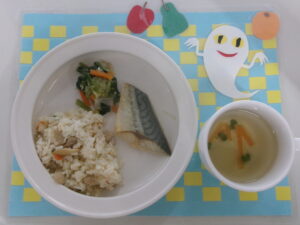 10月20日(月) 公開日: 2025年10月20日更新日: 2025年10月20日著者: kabutodaiカテゴリー: 兜台保育園給食献立 主食・・・炊き込みごはん 主菜・・・鯖の塩焼き 副菜・・・青菜のお浸し お汁・・・冬瓜汁 関連記事 12月20日(金) 主食・・・ごはん ひじきふりかけ 主菜・・・鮭の塩焼き 副菜・・・柚子和え お汁・・・みそ汁 公開日: 2024年12月20日更新日: 2024年12月20日著者: kabutodaiカテゴリー: 兜台保育園給食献立 11月19日(金) 主食・・・ビーフカレーライス デザート・・・フルーツヨーグルト 公開日: 2021年11月19日更新日: 2021年11月19日著者: kabutodaiカテゴリー: 兜台保育園給食献立 5月15日(月) 主食・・・ごはん 主菜・・・鯖の塩焼き 副菜・・・おかか和え お汁・・・具だくさんみそ汁 ひじきふりかけ 公開日: 2023年5月15日更新日: 2023年5月15日著者: kabutodaiカテゴリー: 兜台保育園給食献立