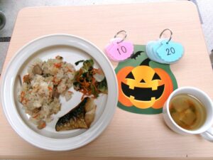 2025年10月20日(月) 公開日: 2025年10月20日更新日: 2025年10月20日著者: aikouカテゴリー: 愛光こども園, 愛光こども園給食献立 *今日の給食* ・炊き込みご飯 ・サバの塩焼き ・青菜のお浸し ・冬瓜汁 KODAK Digital Still Camera *今日のおやつ* ・お茶 ・高野そぼろおにぎり