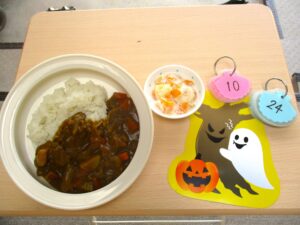 2025年10月24日(金) 公開日: 2025年10月24日更新日: 2025年10月24日著者: aikouカテゴリー: 愛光こども園, 愛光こども園給食献立 *今日の給食* ・さつまいもカレーライス ・フルーツヨーグルト *今日のおやつ* ・お茶 ・きつねおにぎり