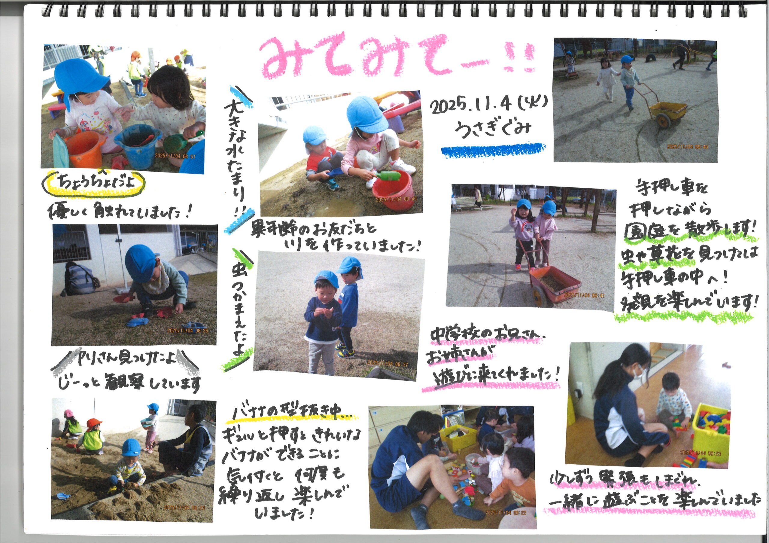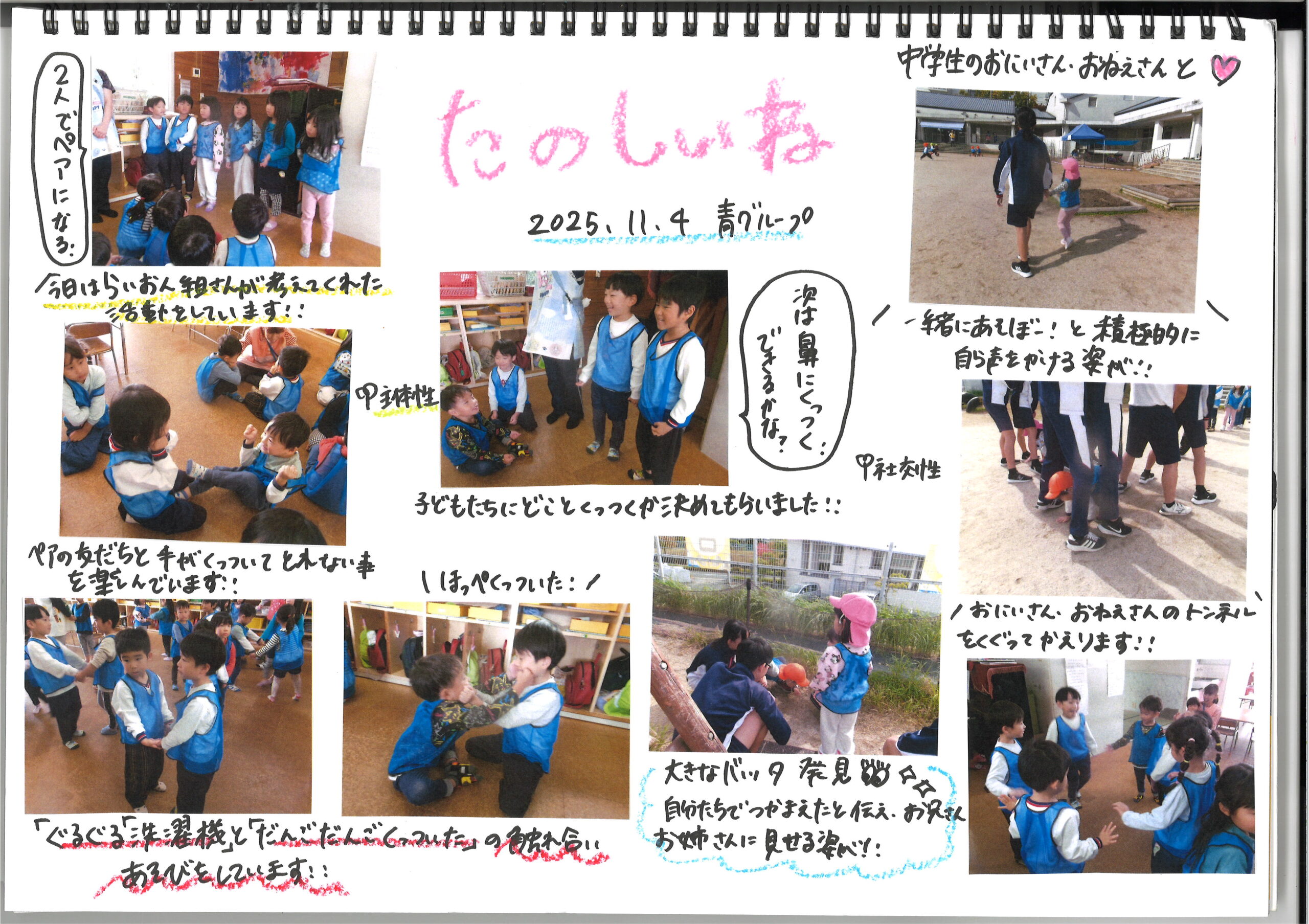 11月5日(金) 今日の様子 ひよこぐみ りすぐみ うさぎぐみ きりんぐみ ぞうぐみ らいおんぐみ &nb […] 公開日: 2021年11月5日更新日: 2021年11月5日著者: kabutodaiカテゴリー: 兜台保育園園ブログ