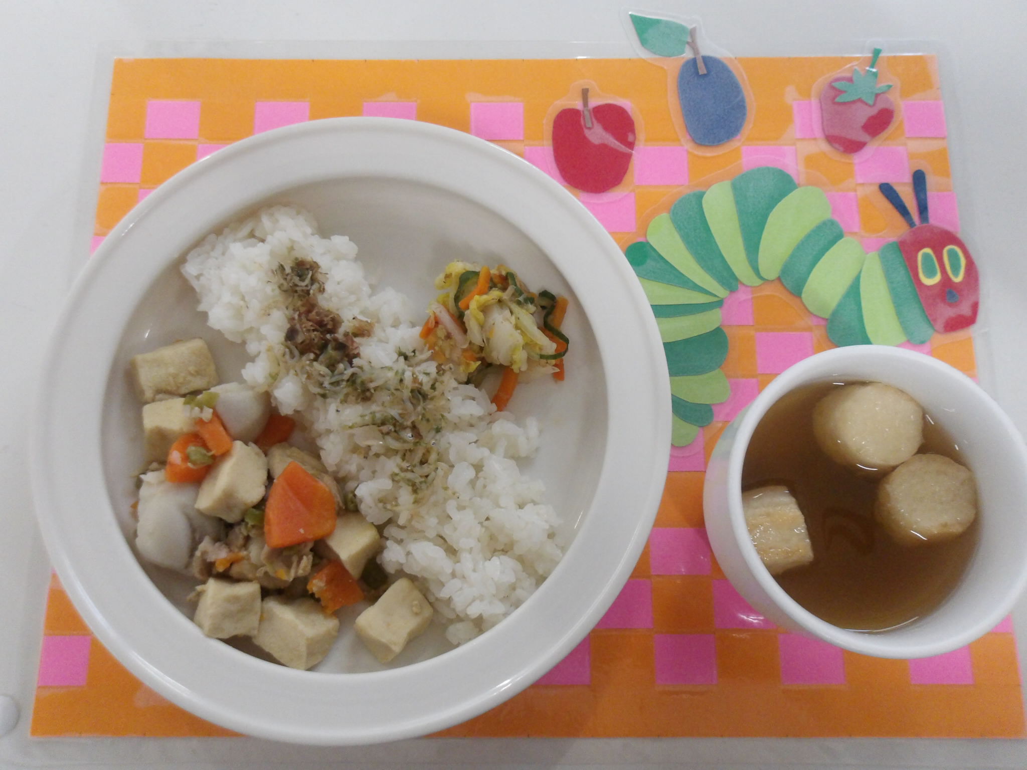 11月5日(水) 公開日: 2025年11月5日更新日: 2025年11月5日著者: kabutodaiカテゴリー: 兜台保育園給食献立 ・麦ごはん 主菜・・・高野豆腐と野菜の煮物 副菜・・・おかか和え お汁・・・みそ汁 じゃこふりかけ 関連記事 2月13日(木) 主食・・・チキンポパイカレー フルーツヨーグルト 公開日: 2025年2月13日更新日: 2025年2月13日著者: kabutodaiカテゴリー: 兜台保育園給食献立 11月19日(火) 主食・・・麦ごはん 主菜・・・鯖の味噌煮 副菜・・・おかか和え お汁・・・けんちん汁 公開日: 2024年11月19日更新日: 2024年11月19日著者: kabutodaiカテゴリー: 兜台保育園給食献立 6月28日(火) 主食・・・ごはん 主菜・・・麻婆豆腐 副菜・・・ナムル お汁・・・春雨スープ 公開日: 2022年6月28日更新日: 2022年6月28日著者: kabutodaiカテゴリー: 兜台保育園給食献立