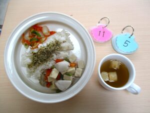 2025年11月5日(水) 公開日: 2025年11月5日更新日: 2025年11月5日著者: aikouカテゴリー: 愛光こども園, 愛光こども園給食献立 *今日の給食* ・ごはん ・高野豆腐と野菜の煮物 ・おかか和え ・みそ汁 ・じゃこふりかけ *今日のおやつ* ・牛乳 ・かぼちゃクッキー
