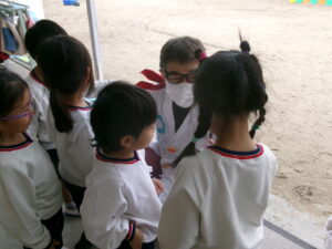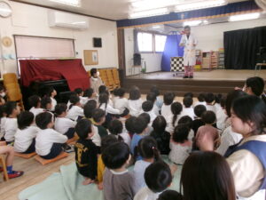 「何が始まるの?」「何か実験かな?爆発する?」と興味津々の子どもたち。