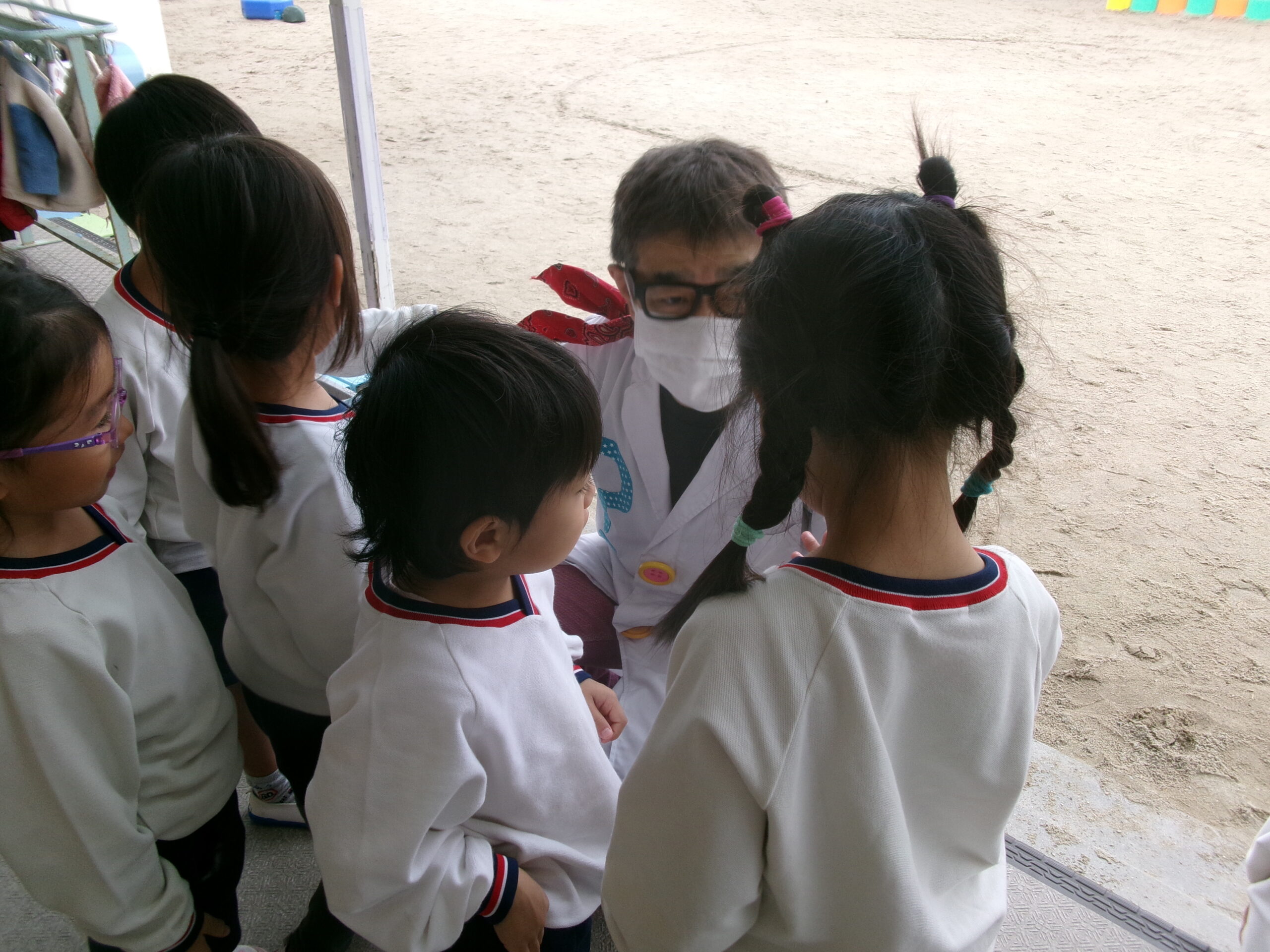 「何が始まるの?」「何か実験かな?爆発する?」と興味津々の子どもたち。