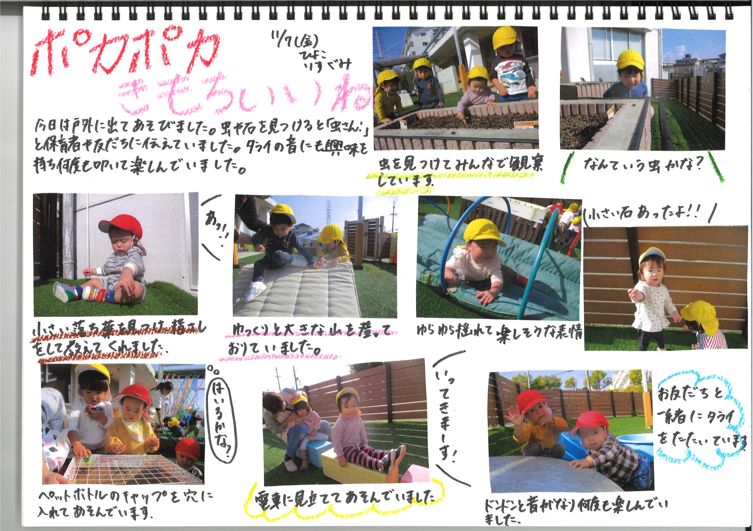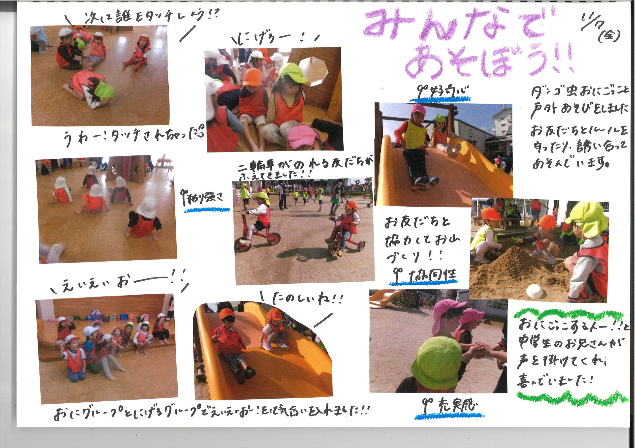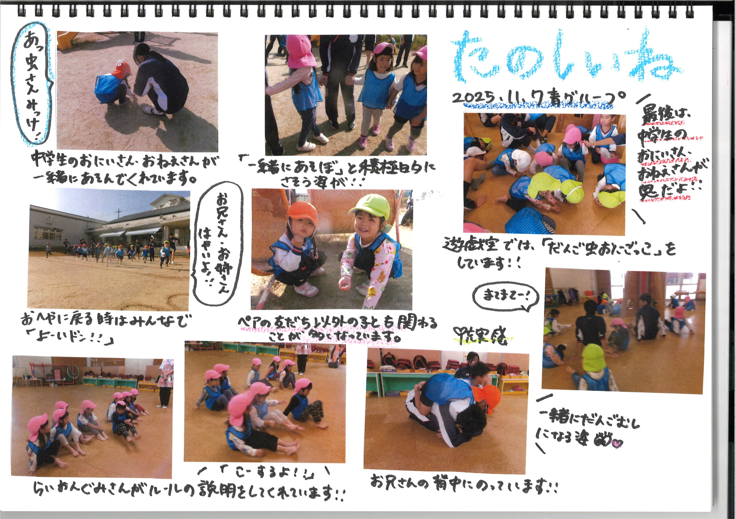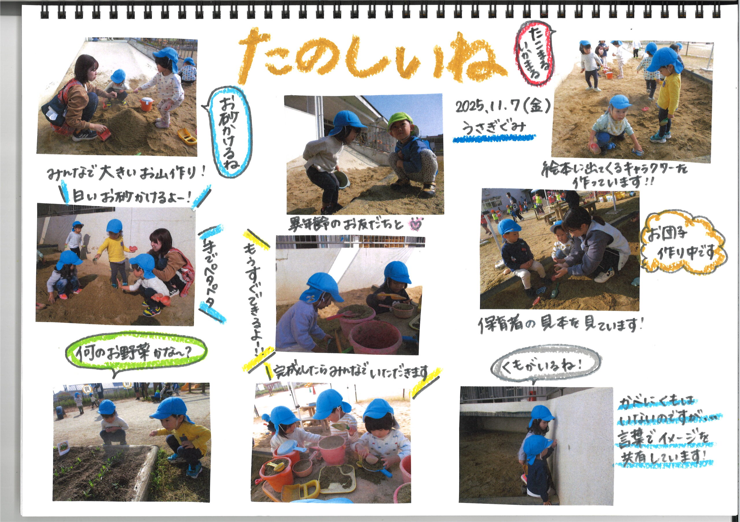 11月7日(金)今日の様子 公開日: 2025年11月7日更新日: 2025年11月7日著者: kabutodaiカテゴリー: 兜台保育園園ブログ ひよこ組・りす組 うさぎ組 赤グループ 青グループ 黄グループ 関連記事 10月27日(火) 今日の様子 ひよこ組 月齢の低いお友だちが初めて砂に触れて遊びました。 ざらざらした感触に戸惑っている子どももいれば、 積極的に触ったりと様々でしたが、 慣れてくると、手で […] 公開日: 2020年10月27日更新日: 2020年10月27日著者: kabutodaiカテゴリー: 兜台保育園園ブログ 9月1日(月)今日の様子 ひよこ組・りす組 うさぎ組 きりん組 ぞう組 らいおん組 公開日: 2025年9月1日更新日: 2025年9月1日著者: kabutodaiカテゴリー: 兜台保育園園ブログ 1月5日(火) 今日の様子 ひよこぐみ りすぐみ うさぎぐみ きりんぐみ ぞうぐみ らいおんぐみ 公開日: 2021年1月5日更新日: 2021年1月5日著者: kabutodaiカテゴリー: 兜台保育園園ブログ