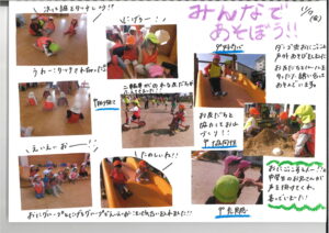 10月27日(火) 今日の様子 ひよこ組 月齢の低いお友だちが初めて砂に触れて遊びました。 ざらざらした感触に戸惑っている子どももいれば、 積極的に触ったりと様々でしたが、 慣れてくると、手で […] 公開日: 2020年10月27日更新日: 2020年10月27日著者: kabutodaiカテゴリー: 兜台保育園園ブログ