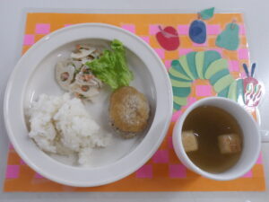 11月17日(月) 公開日: 2025年11月17日更新日: 2025年11月17日著者: kabutodaiカテゴリー: 兜台保育園給食献立 主食・・・ごはん 主菜・・・和風おろしハンバーグ 副菜・・・レンコンサラダ お汁・・・みそ汁 関連記事 4月26日(木) 主食・・・ごはん 主菜・・・鶏肉の唐揚げ 副菜・・・マカロニサラダ お汁・・・みそ汁 デザート・・・桃ゼリー 公開日: 2018年4月26日更新日: 2018年4月26日著者: kabutodaiカテゴリー: 兜台保育園, 兜台保育園給食献立 6月23日(金) 主食・・・ごはん 主菜・・・豚肉の梅生姜炒め 副菜・・・酢の物 お汁・・・みそ汁 公開日: 2023年6月23日更新日: 2023年6月23日著者: kabutodaiカテゴリー: 兜台保育園給食献立 19 12月19日(水) 主食・・・麦ごはん 主菜・・・マロニーの醤油炒め 副菜・・・鶏レバーの生姜煮 お汁・・・わかめスープ 公開日: 2018年12月19日更新日: 2018年12月19日著者: kabutodaiカテゴリー: 兜台保育園, 兜台保育園給食献立