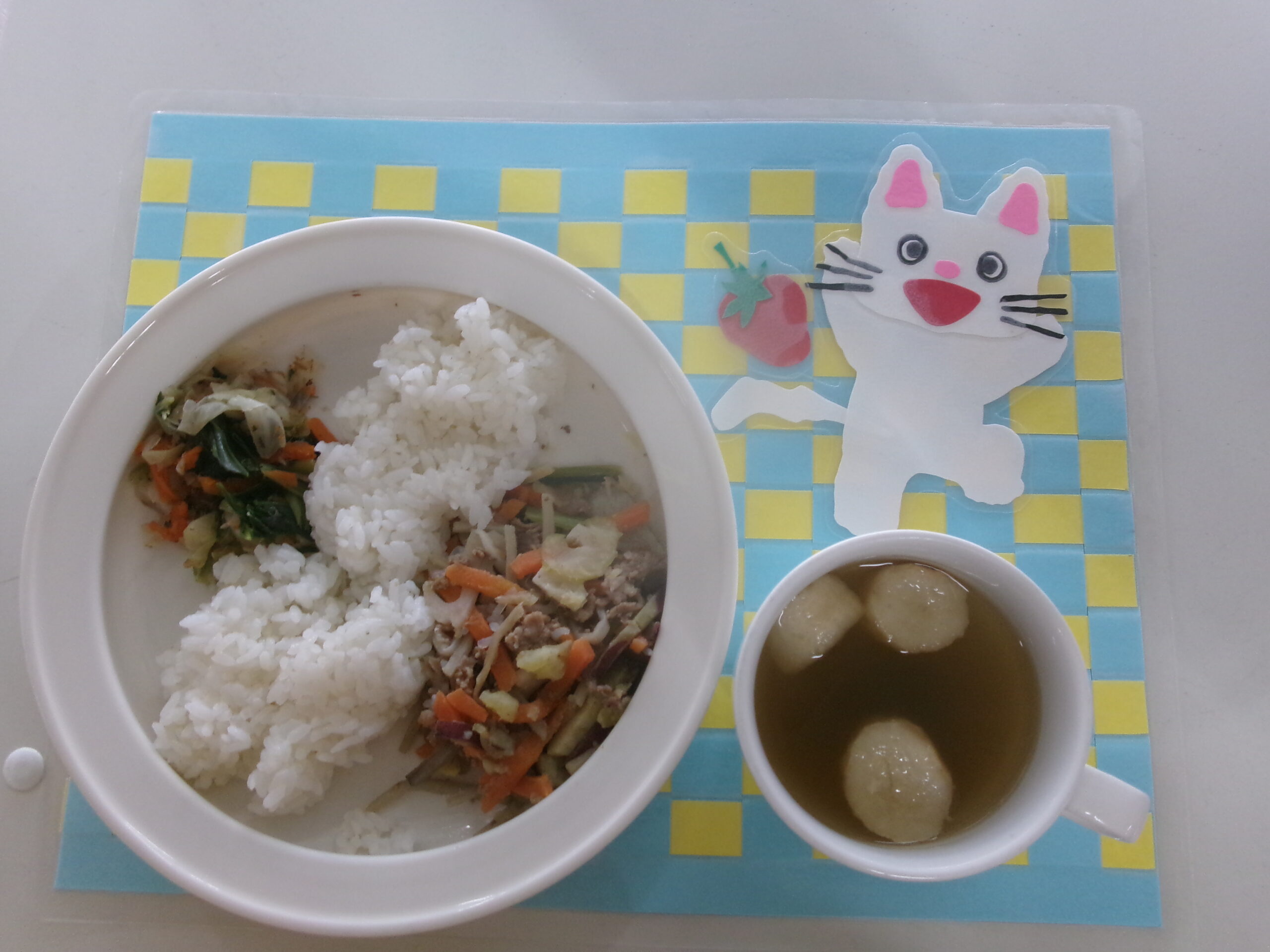 12月2日(火) 公開日: 2025年12月2日更新日: 2025年12月2日著者: kabutodaiカテゴリー: 兜台保育園給食献立 主食・・・ごはん 主菜・・・変わり金平 副菜・・・おかか和え お汁・・・みそ汁 関連記事 13 5月13日(月) 主食・・・ごはん のり佃煮 主菜・・・鮭の更紗焼き 副菜・・・きんぴらごぼう お汁・・・みそ汁 公開日: 2019年5月13日更新日: 2019年5月14日著者: kabutodaiカテゴリー: 兜台保育園給食献立 5月6日(木) 主食・・・ごはん のり佃煮 主菜・・・切干し大根とツナの煮物 副菜・・・オクラのなめ茸和え お汁・・・そうめん汁 公開日: 2021年5月6日更新日: 2021年5月6日著者: kabutodaiカテゴリー: 兜台保育園給食献立 8月1日(金) 主食・・・ごはん 主菜・・・ミンチカツ 副菜・・・春雨マヨサラダ お汁・・・みそ汁 公開日: 2025年8月1日更新日: 2025年8月1日著者: kabutodaiカテゴリー: 兜台保育園給食献立