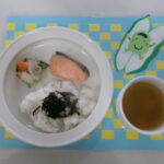 主食・・・ごはん 主菜・・・鮭の塩焼き 副菜・・・柚香和え お汁・・・みそ汁 ひじきふりかけ