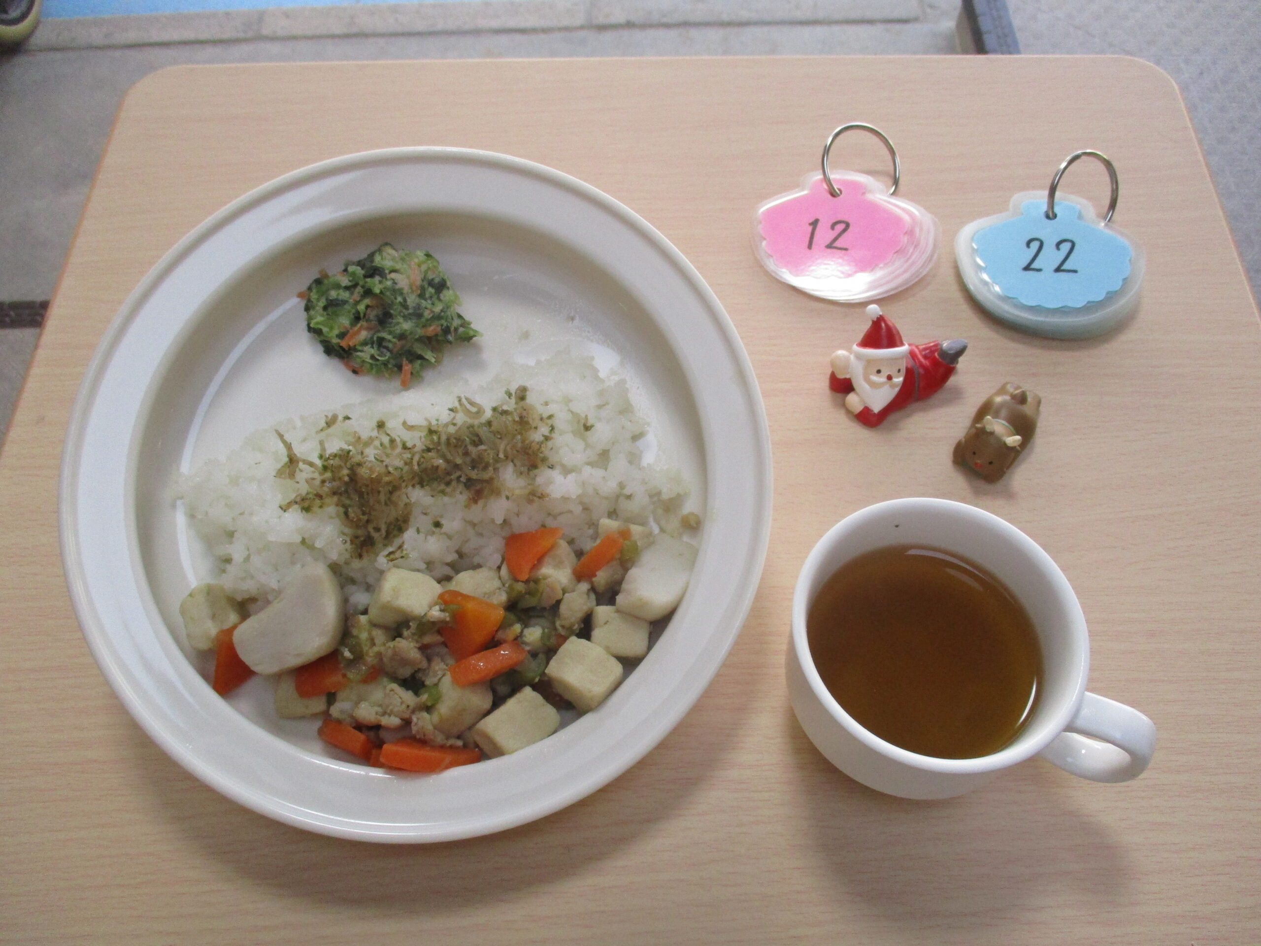 2025年12月22日(月) 公開日: 2025年12月22日更新日: 2025年12月22日著者: aikouカテゴリー: 愛光こども園, 愛光こども園給食献立 *今日の給食* ・ごはん ・高野豆腐と野菜の煮物 ・ほうれん草とツナのマヨサラダ ・みそ汁 ・じゃこふりかけ *今日のおやつ* ・お茶 ・サケわかめおにぎり