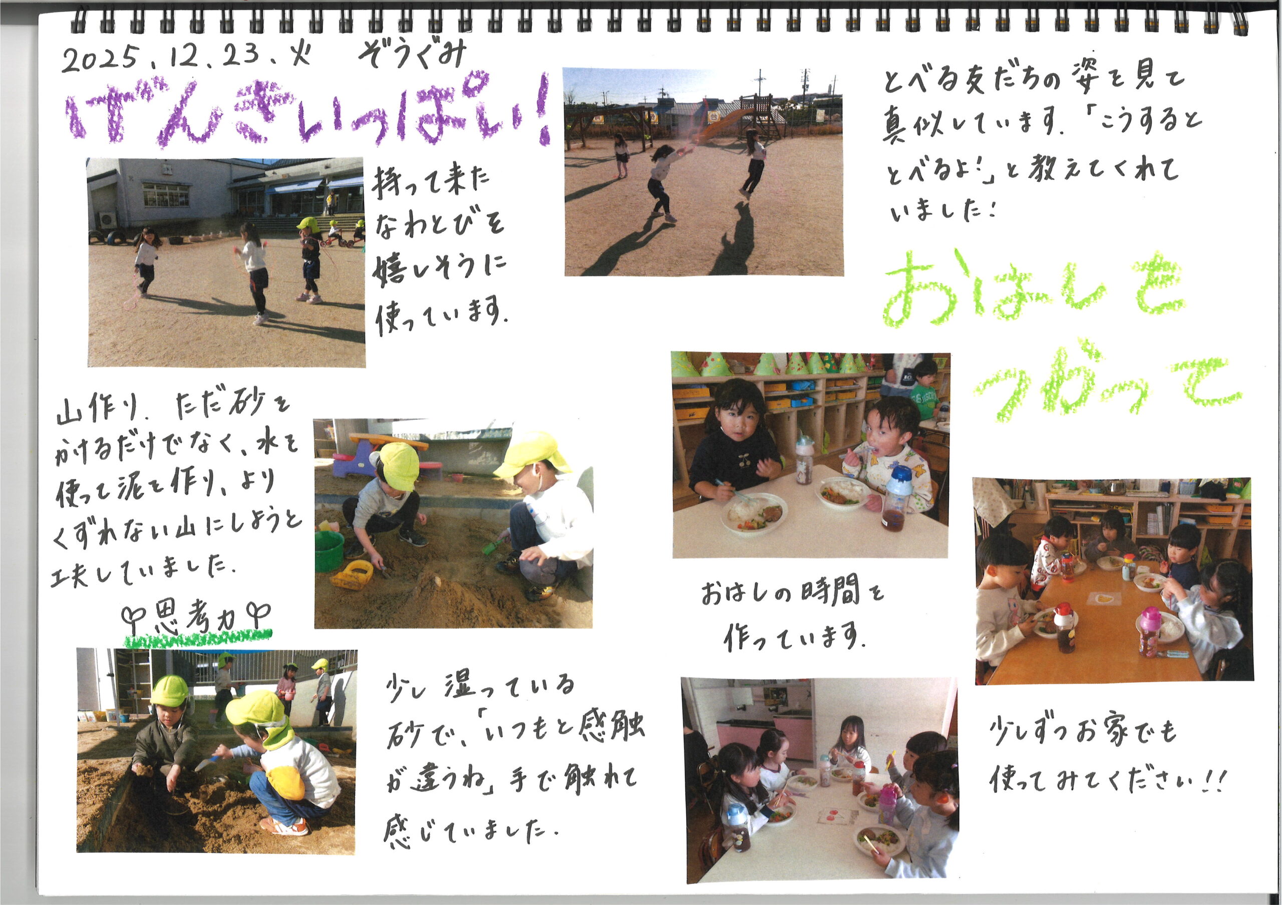 12月23日(火)今日の様子 公開日: 2025年12月23日更新日: 2025年12月23日著者: kabutodaiカテゴリー: 兜台保育園園ブログ ひよこ・りす組 うさぎ組 きりん組 ぞう組 らいおん組 関連記事 2月3日(金)今日の様子 ひよこぐみ りすぐみ うさぎぐみ きりんぐみ ぞうぐみ らいおんぐみ 公開日: 2023年2月4日更新日: 2023年2月4日著者: kabutodaiカテゴリー: 兜台保育園園ブログ 6月16日(月)今日の様子 ひよこ組・りす組 うさぎ組 きりん組 ぞう組 らいおん組 公開日: 2025年6月16日更新日: 2025年6月16日著者: kabutodaiカテゴリー: 兜台保育園園ブログ 11月13日(木)今日の様子 ひよこ・りす組 うさぎ組 きりん組 ぞう組 らいおん組 公開日: 2025年11月13日更新日: 2025年11月13日著者: kabutodaiカテゴリー: 兜台保育園園ブログ