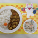 主食・・・チキンカレーライス 副菜・・・ごぼうサラダ 乳酸菌飲料