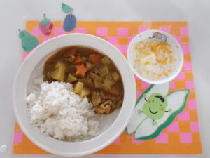 1月8日(木) 公開日: 2026年1月8日更新日: 2026年1月8日著者: kabutodaiカテゴリー: 兜台保育園給食献立 主食・・・ポークカレーライス フルーツヨーグルト 関連記事 16 5月16日(木) 主食・・・ごはん 主菜・・・すき焼き煮 副菜・・・さくら漬け 汁・・・すまし汁 公開日: 2019年5月16日更新日: 2019年5月16日著者: kabutodaiカテゴリー: 兜台保育園給食献立 27 7月27日(月) 主食・・・ご飯 主菜・・・切干大根とツナの煮物 副菜・・・オクラのなめ茸和え 汁物・・・みそ汁 公開日: 2020年7月27日更新日: 2020年7月27日著者: kabutodaiカテゴリー: 兜台保育園給食献立, 未分類 10月27日(火) 主食・・・ご飯 主菜・・・韓国風つけだれ焼き 副菜・・・香り和え お汁・・・みそ汁 ひじきふりかけ 公開日: 2020年10月27日更新日: 2020年10月27日著者: kabutodaiカテゴリー: 兜台保育園給食献立