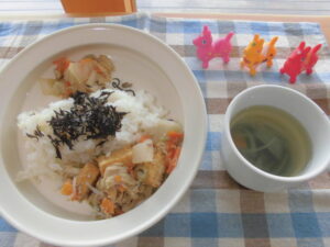 1月13日(火) 公開日: 2026年1月13日更新日: 2026年1月13日著者: aikouminoriカテゴリー: 愛光みのりこども園給食献立 ごはん 大根と豚肉のみそ煮込み キャベツのポン酢和え すまし汁 ひじきふりかけ 関連記事 08 4/8(水) 麦ごはん コンソメスープ ローストチキン ブロッコリーサラダ 公開日: 2020年4月8日更新日: 2020年4月8日著者: aikouminoriカテゴリー: 愛光みのりこども園給食献立 21 8月21日(水) 麦ごはん さわらのみそマヨ焼き おかか和え すまし汁 公開日: 2024年8月21日更新日: 2024年8月21日著者: aikouminoriカテゴリー: 愛光みのりこども園給食献立, 未分類 27 6月27日(月) ハヤシライス キャベツのツナサラダ 公開日: 2022年6月27日更新日: 2022年6月27日著者: aikouminoriカテゴリー: 愛光みのりこども園給食献立