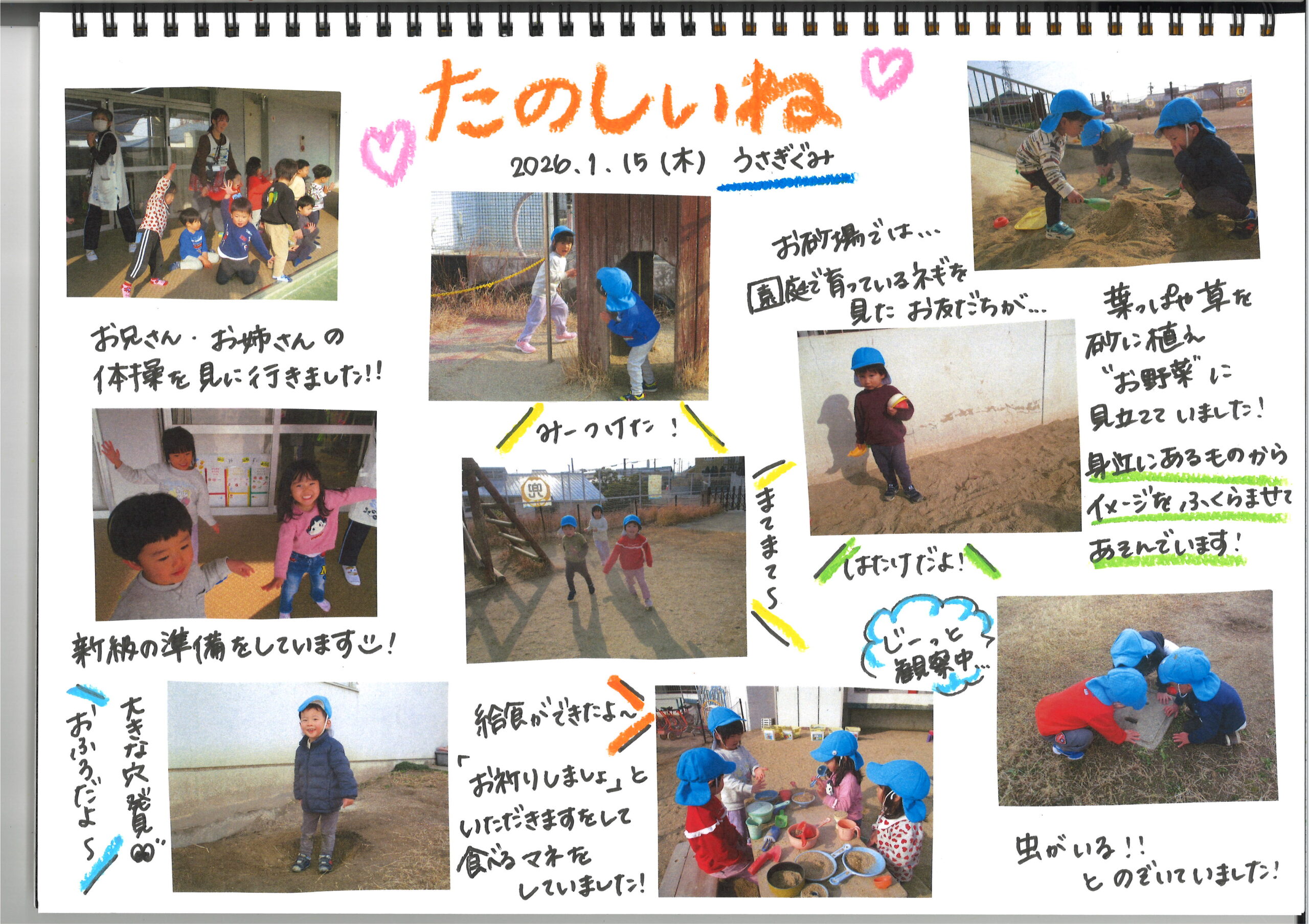 1月15日(木) 今日の様子 公開日: 2026年1月15日更新日: 2026年1月15日著者: kabutodaiカテゴリー: 兜台保育園園ブログ ひよこ・りす組 うさぎ組 きりん組 ぞう組 らいおん組 関連記事 8月31日(木)今日の様子 ひよこぐみ りすぐみ うさぎぐみ きりんぐみ ぞうぐみ らいおんぐみ 公開日: 2023年8月31日更新日: 2023年8月31日著者: kabutodaiカテゴリー: 兜台保育園園ブログ 7月6日(木)今日の様子 ひよこぐみ りすぐみ うさぎぐみ きりんぐみ ぞうぐみ らいおんぐみ 公開日: 2023年7月6日更新日: 2023年7月6日著者: kabutodaiカテゴリー: 兜台保育園園ブログ 3月19日(水)今日の様子 ひよこ・りす組 青グループ 黄グループ 赤グループ らいおん組 公開日: 2025年3月21日更新日: 2025年3月21日著者: kabutodaiカテゴリー: 兜台保育園園ブログ