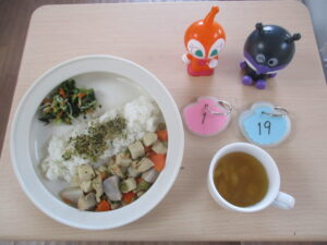 2026年1月19日(月) 公開日: 2026年1月19日更新日: 2026年1月19日著者: aikouカテゴリー: 愛光こども園, 愛光こども園給食献立 *今日の給食* ・ごはん ・高野豆腐と野菜の煮物 ・青菜のお浸し ・みそ汁 ・じゃこふりかけ *今日のおやつ* ・牛乳 ・豆乳蒸しパン