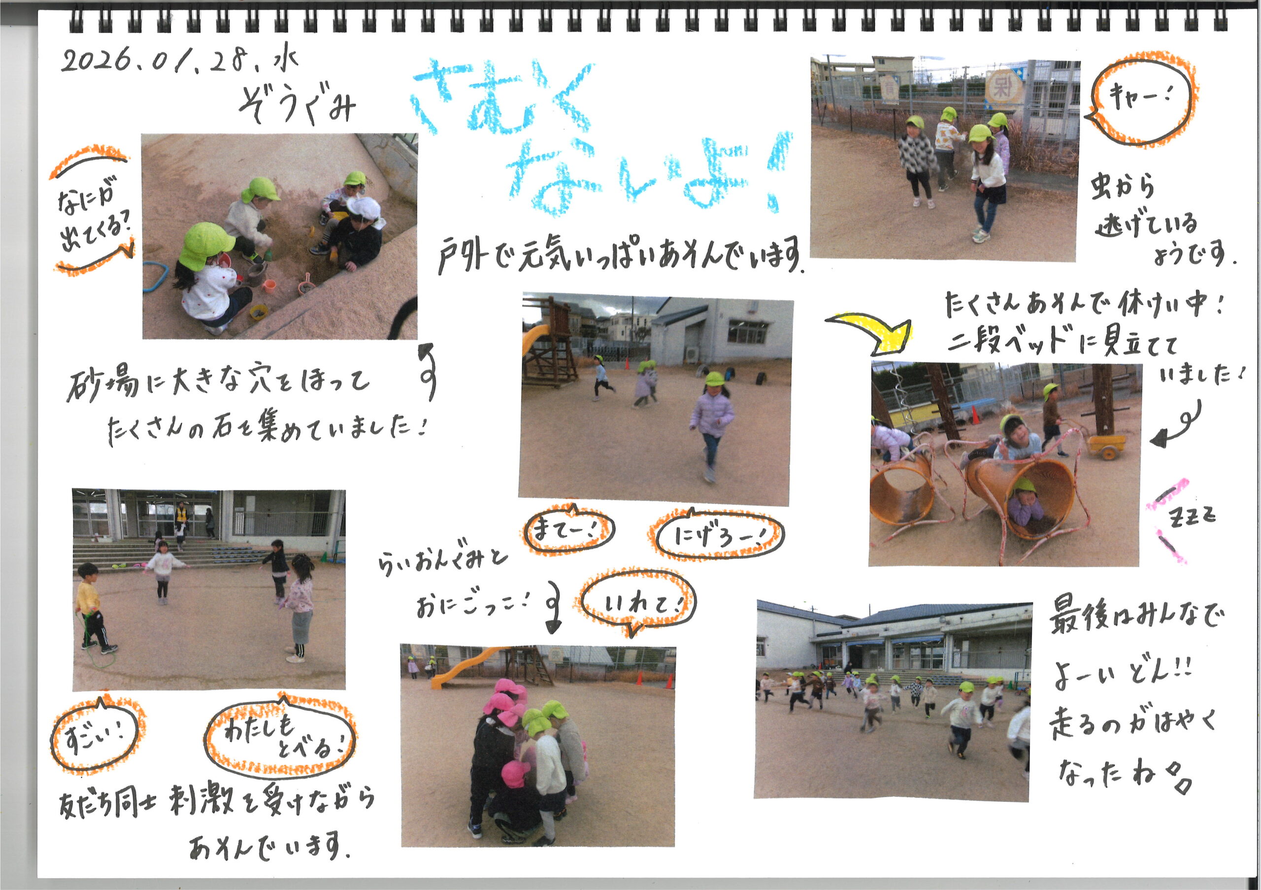 1月28日(水) 今日の様子 公開日: 2026年1月28日更新日: 2026年1月28日著者: kabutodaiカテゴリー: 兜台保育園園ブログ ひよこ・りす組 うさぎ組 きりん組 ぞう組 らいおん組 関連記事 10月11日(水)今日の様子 ひよこぐみ りすぐみ うさぎぐみ 黄グループ 赤グループ 青グループ 公開日: 2023年10月11日更新日: 2023年10月11日著者: kabutodaiカテゴリー: 兜台保育園園ブログ 5月19日(月)今日の様子 ひよこ組・りす組 うさぎ組 きりん組 ぞう組 らいおん組 公開日: 2025年5月19日更新日: 2025年5月19日著者: kabutodaiカテゴリー: 兜台保育園園ブログ 11月25日(月) 今日の様子 ひよこ・りす組 うさぎ組 きりん組 ぞう組 らいおん組 公開日: 2024年11月25日更新日: 2024年11月25日著者: kabutodaiカテゴリー: 兜台保育園園ブログ