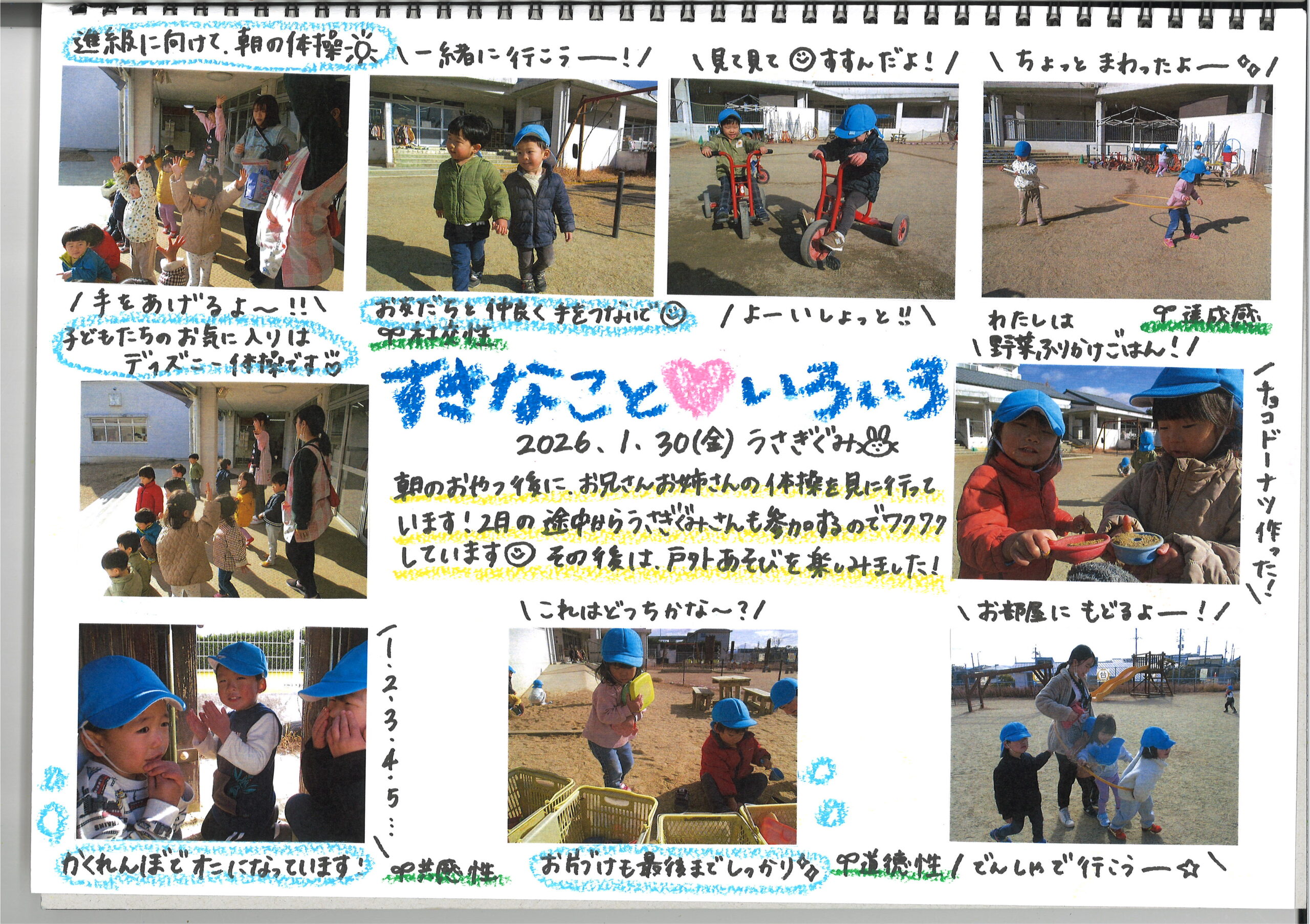 1月30日(金) 今日の様子 公開日: 2026年1月30日更新日: 2026年1月30日著者: kabutodaiカテゴリー: 兜台保育園園ブログ ひよこ・りす組 うさぎ組 赤グループ 青グループ 黄グループ 関連記事 9月5日(木)今日の様子 ひよこ・りす組 うさぎ組 きりん組 ぞう組 らいおん組 公開日: 2024年9月5日更新日: 2024年9月5日著者: kabutodaiカテゴリー: 兜台保育園園ブログ 6月26日(金) 今日の様子 りす組 「コップに入れて!」 「水遊びに夢中!」 うさぎ組 「シール、ぺたっ」 「次は何色にしようかな?」 きりん組 […] 公開日: 2020年6月26日更新日: 2020年9月9日著者: kabutodaiカテゴリー: 兜台保育園園ブログ 7月12日(水)今日の様子 ひよこぐみ りすぐみ うさぎぐみ きりん・ぞうぐみ きりん・らいおんぐみ 公開日: 2023年7月12日更新日: 2023年7月12日著者: kabutodaiカテゴリー: 兜台保育園園ブログ