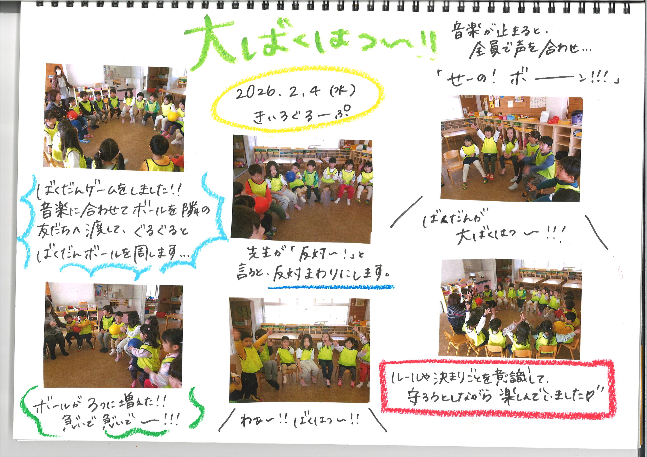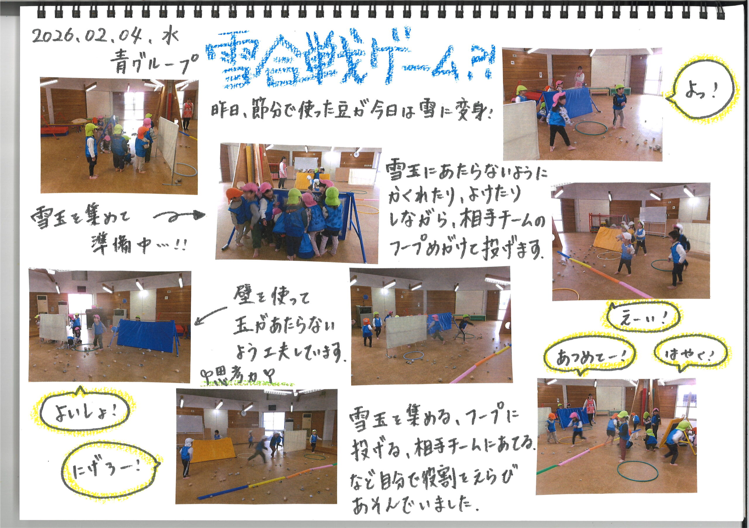 2月4日(水) 今日の様子 公開日: 2026年2月4日更新日: 2026年2月4日著者: kabutodaiカテゴリー: 兜台保育園, 兜台保育園園ブログ ひよこ・りすぐみ うさぎぐみ 赤グループ 青グループ 黄グループ