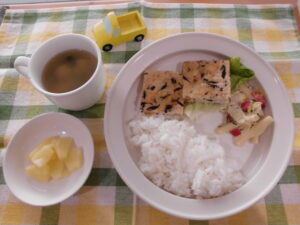2月12日(木) 公開日: 2026年2月12日更新日: 2026年2月12日著者: aikouminoriカテゴリー: 愛光みのりこども園給食献立 ごはん 高野とひじきの鶏のつくね焼き マカロニサラダ みそ汁 パイン 関連記事 10 4月10日(水) チキンカレーライス フルーツヨーグルト 公開日: 2024年4月10日更新日: 2024年4月10日著者: aikouminoriカテゴリー: 愛光みのりこども園給食献立 22 1月22日(木) チキンポパイカレー レンコンサラダ 公開日: 2026年1月22日更新日: 2026年1月22日著者: aikouminoriカテゴリー: 愛光みのりこども園給食献立 27 9月27日(金) ミートスパゲティー コンソメスープ ブロッコリーのサラダ オレンジゼリー 公開日: 2019年9月27日更新日: 2019年9月27日著者: aikouminoriカテゴリー: 愛光みのりこども園給食献立