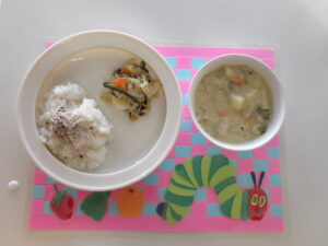 2月13日(金) 公開日: 2026年2月13日更新日: 2026年2月13日著者: kabutodaiカテゴリー: 兜台保育園給食献立 主食・・・ごはん 主菜・・・鶏肉の豆乳シチュー 副菜・・・ツナの海藻サラダ じゃこゆかりふりかけ 関連記事 01 8月1日(木) 主食・・・ご飯 主菜・・・切り干し大根と豚肉の煮物 副菜・・・香り和え お汁・・・みそ汁 公開日: 2019年8月1日更新日: 2019年8月1日著者: kabutodaiカテゴリー: 兜台保育園給食献立 1月22日(木) 主食・・・チキンポパイカレー 副菜・・・レンコンサラダ 公開日: 2026年1月22日更新日: 2026年1月22日著者: kabutodaiカテゴリー: 兜台保育園給食献立 4月18日(金) 主食・・・ビーフカレーライス 副菜・・・フルーツヨーグルト 公開日: 2025年4月18日更新日: 2025年4月21日著者: kabutodaiカテゴリー: 兜台保育園給食献立