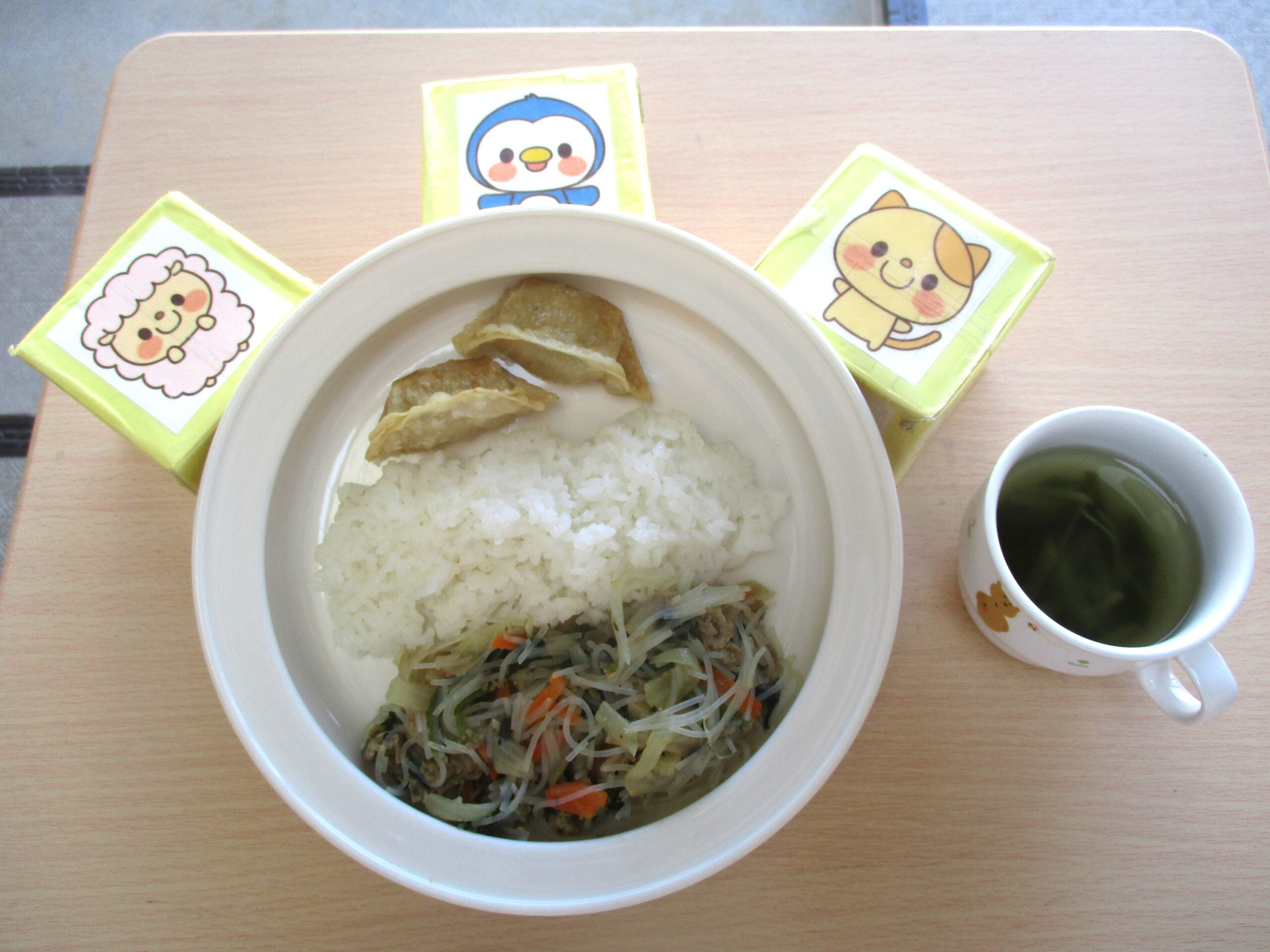 2026年2月17日(火) 公開日: 2026年2月17日更新日: 2026年2月17日著者: aikouカテゴリー: 愛光こども園, 愛光こども園給食献立 *今日の給食* ・ごはん ・チャプチェ ・揚げ餃子 ・中華スープ *今日のおやつ* ・お茶 ・カル鉄ぶどうゼリー ・アンパンマンせんべい