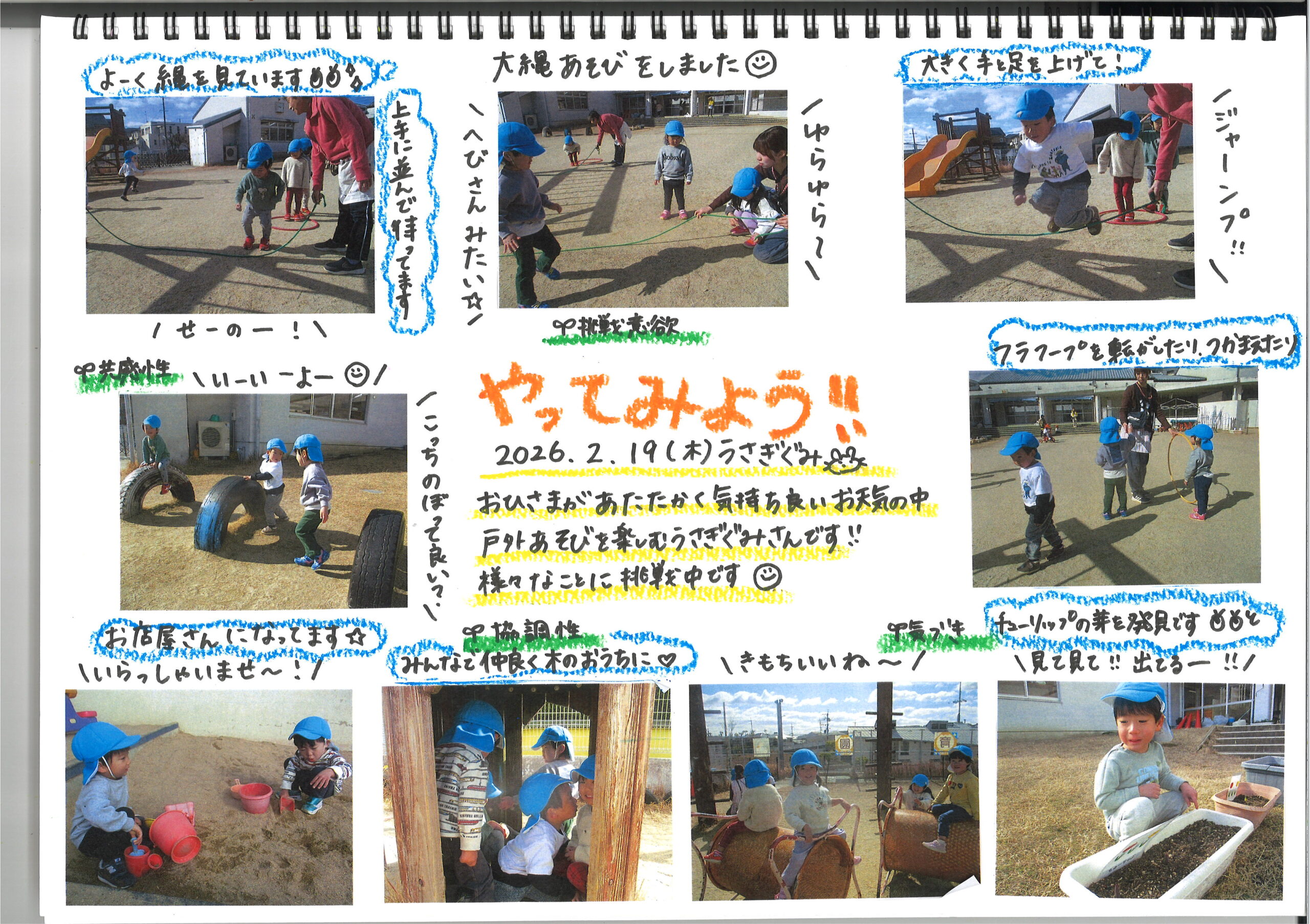 2月19日(木) 今日の様子 公開日: 2026年2月19日更新日: 2026年2月19日著者: kabutodaiカテゴリー: 兜台保育園園ブログ ひよこ・りす組 うさぎ組 きりん組 ぞう組 らいおん組 関連記事 11月16日(木)今日の様子 ひよこぐみ りすぐみ うさぎぐみ きりんぐみ ぞうぐみ らいおんぐみ 公開日: 2023年11月17日更新日: 2023年11月17日著者: kabutodaiカテゴリー: 兜台保育園園ブログ 08 10月8日(金)今日の様子 ひよこぐみ りすぐみ うさぎぐみ きりんぐみ ぞうぐみ らいおんぐみ 公開日: 2021年10月8日更新日: 2021年10月8日著者: kabutodaiカテゴリー: 兜台保育園園ブログ 3月23日(木)今日の様子 ひよこぐみ りすぐみ うさぎぐみ きりんぐみ ぞうぐみ らいおんぐみ 公開日: 2023年3月24日更新日: 2023年3月24日著者: kabutodaiカテゴリー: 兜台保育園園ブログ