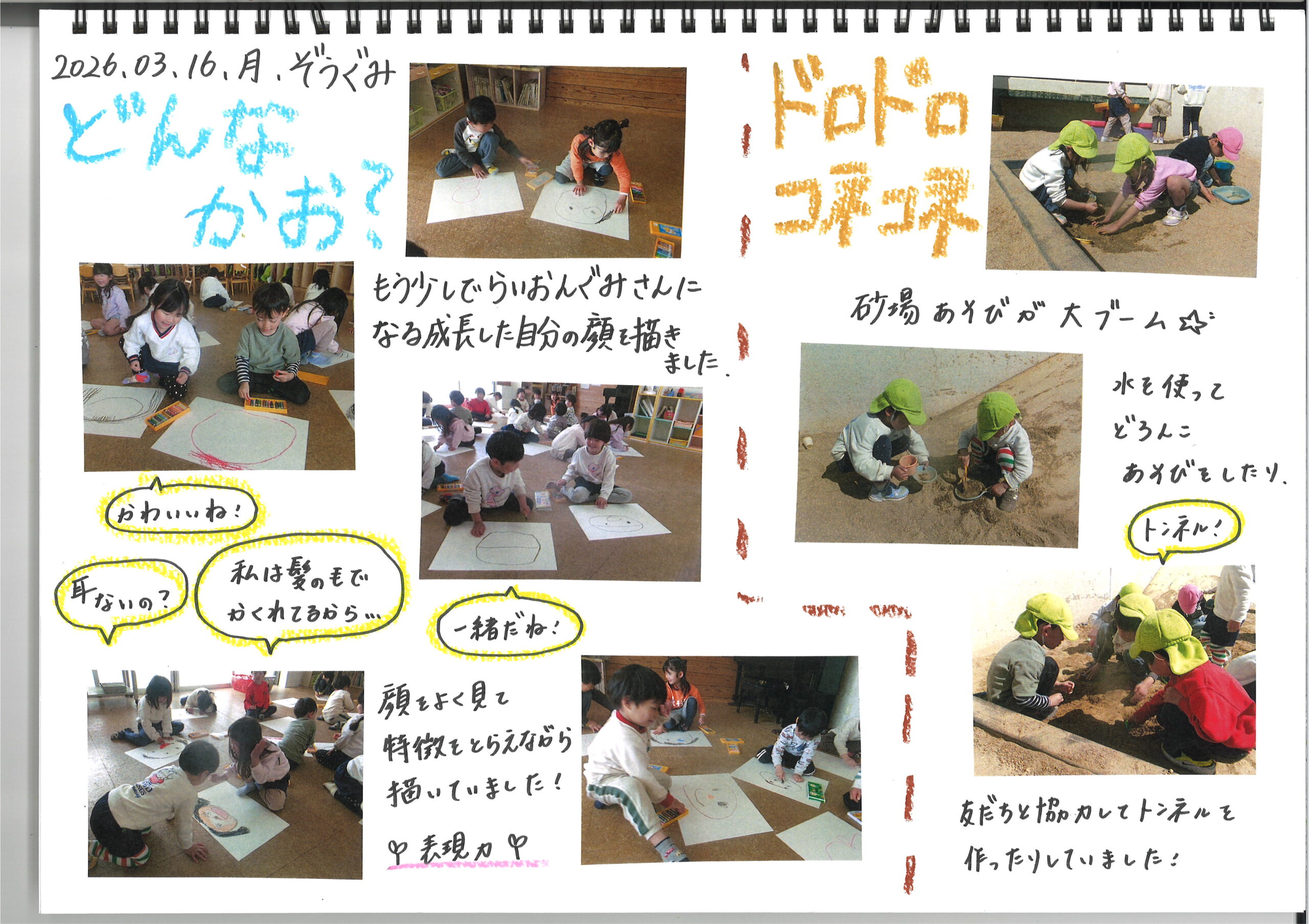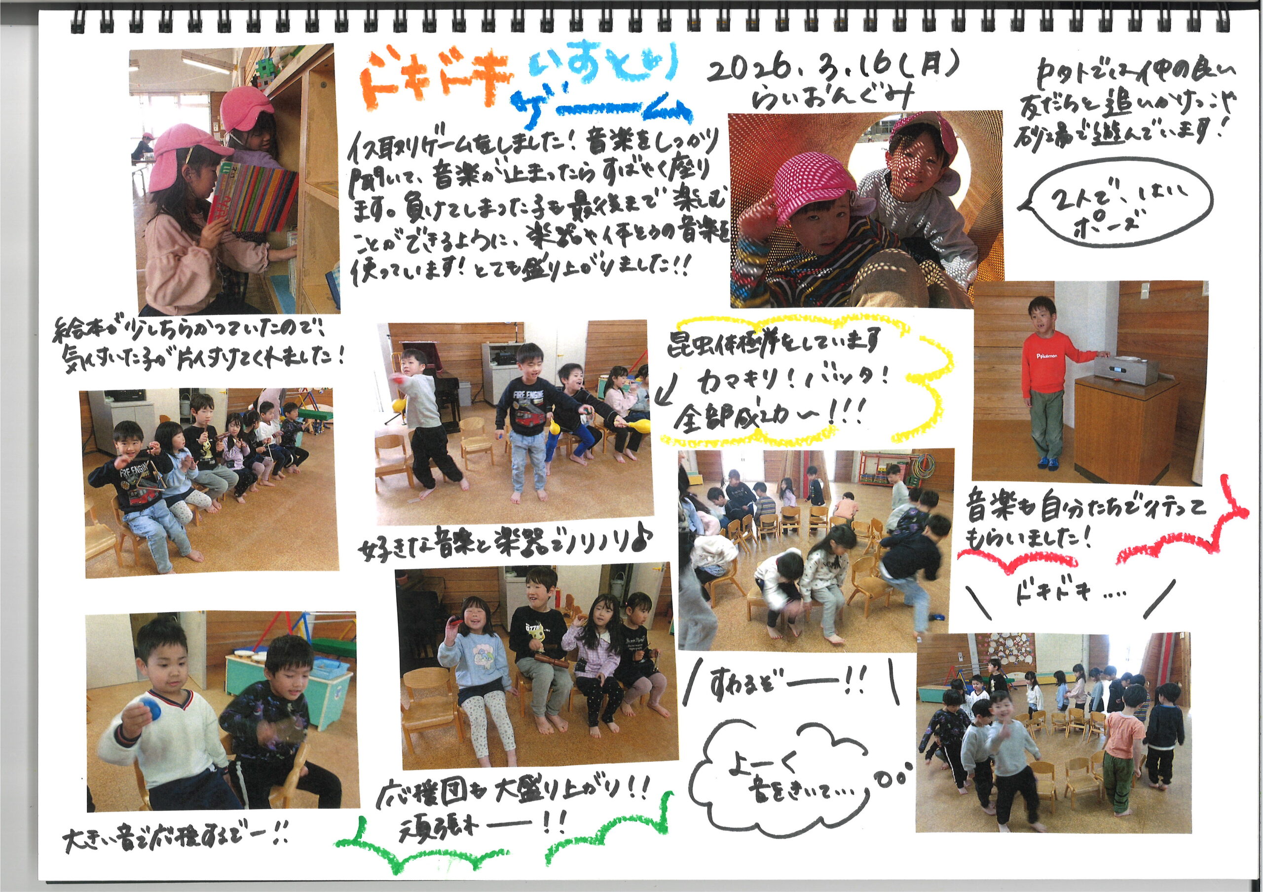 3月16日(月)今日の様子 公開日: 2026年3月16日更新日: 2026年3月16日著者: kabutodaiカテゴリー: 兜台保育園園ブログ ひよこ・りす組 うさぎ組 きりん組 ぞう組 らいおん組 関連記事 6月14日(火)今日の様子 ひよこぐみ りすぐみ うさぎぐみ きりんぐみ 公開日: 2022年6月14日更新日: 2022年6月14日著者: kabutodaiカテゴリー: 兜台保育園園ブログ 5月7日(水)今日の様子 ひよこ組・りす組 うさぎ組 赤グループ 青グループ 黄グループ 公開日: 2025年5月7日更新日: 2025年5月7日著者: kabutodaiカテゴリー: 兜台保育園園ブログ 11月20日(木) 今日の様子 ひよこ・りす組 うさぎ組 きりん組 ぞう組 らいおん組 公開日: 2025年11月20日更新日: 2025年11月20日著者: kabutodaiカテゴリー: 兜台保育園園ブログ