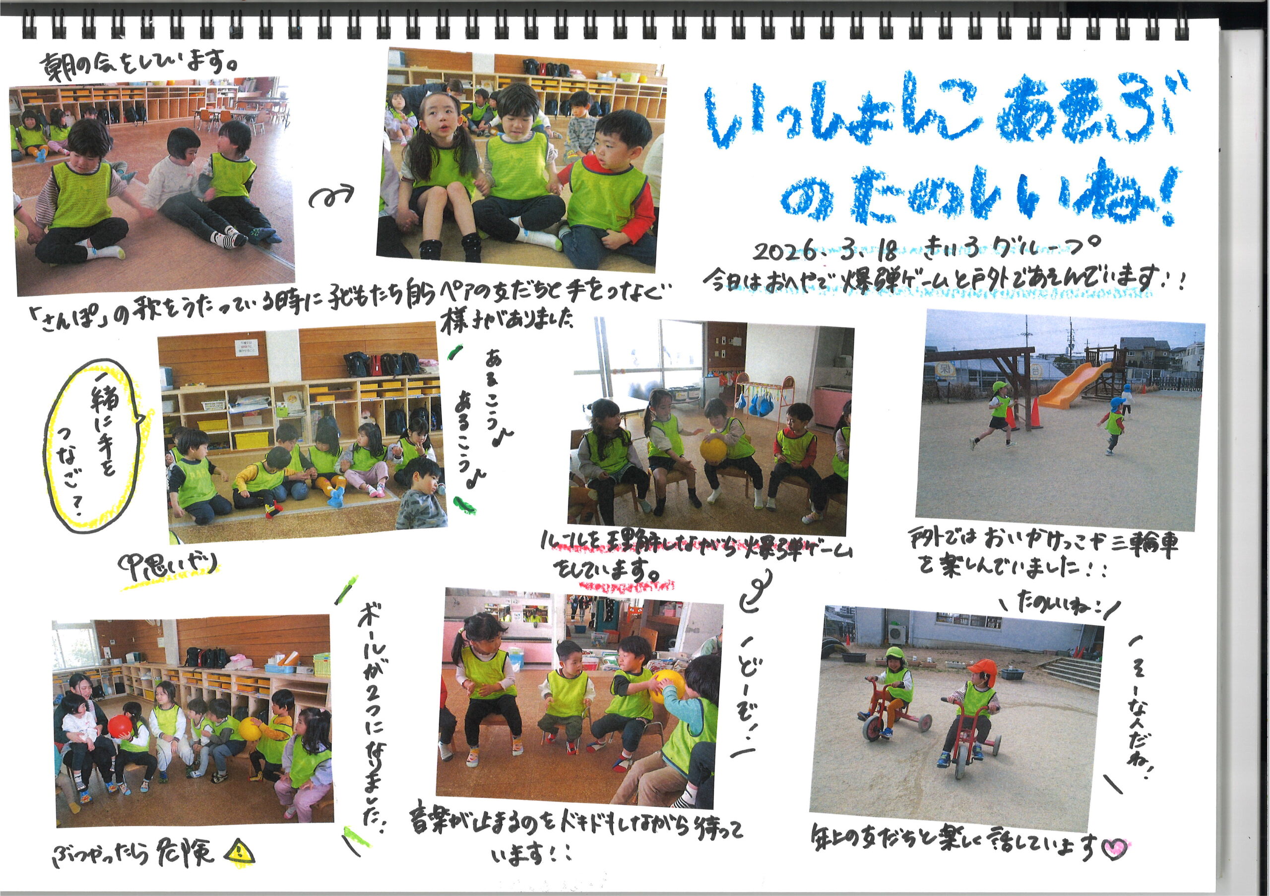 3月18日(水)今日の様子 公開日: 2026年3月18日更新日: 2026年3月18日著者: kabutodaiカテゴリー: 兜台保育園園ブログ ひよこ・りす組 赤グループ 青グループ 黄グループ らいおん組 関連記事 7月28日(月)今日の様子 ひよこ・りすぐみ うさぎぐみ きりんぐみ ぞうぐみ らいおんぐみ 公開日: 2025年7月28日更新日: 2025年7月28日著者: kabutodaiカテゴリー: 兜台保育園園ブログ 5月30日(金)今日の様子 ひよこ組・りす組 うさぎ組 きりん組 ぞう組 らいおん組 公開日: 2025年5月30日更新日: 2025年6月2日著者: kabutodaiカテゴリー: 兜台保育園園ブログ 明けましておめでとうございます 明けましておめでとうございます 今年もどうぞよろしくお願いします。 「おもちたくさん食べたよ」 「お年玉もらってん」 「旅行に行ったよ」 「おじい […] 公開日: 2020年1月8日更新日: 2020年1月9日著者: kabutodaiカテゴリー: 兜台保育園園ブログ