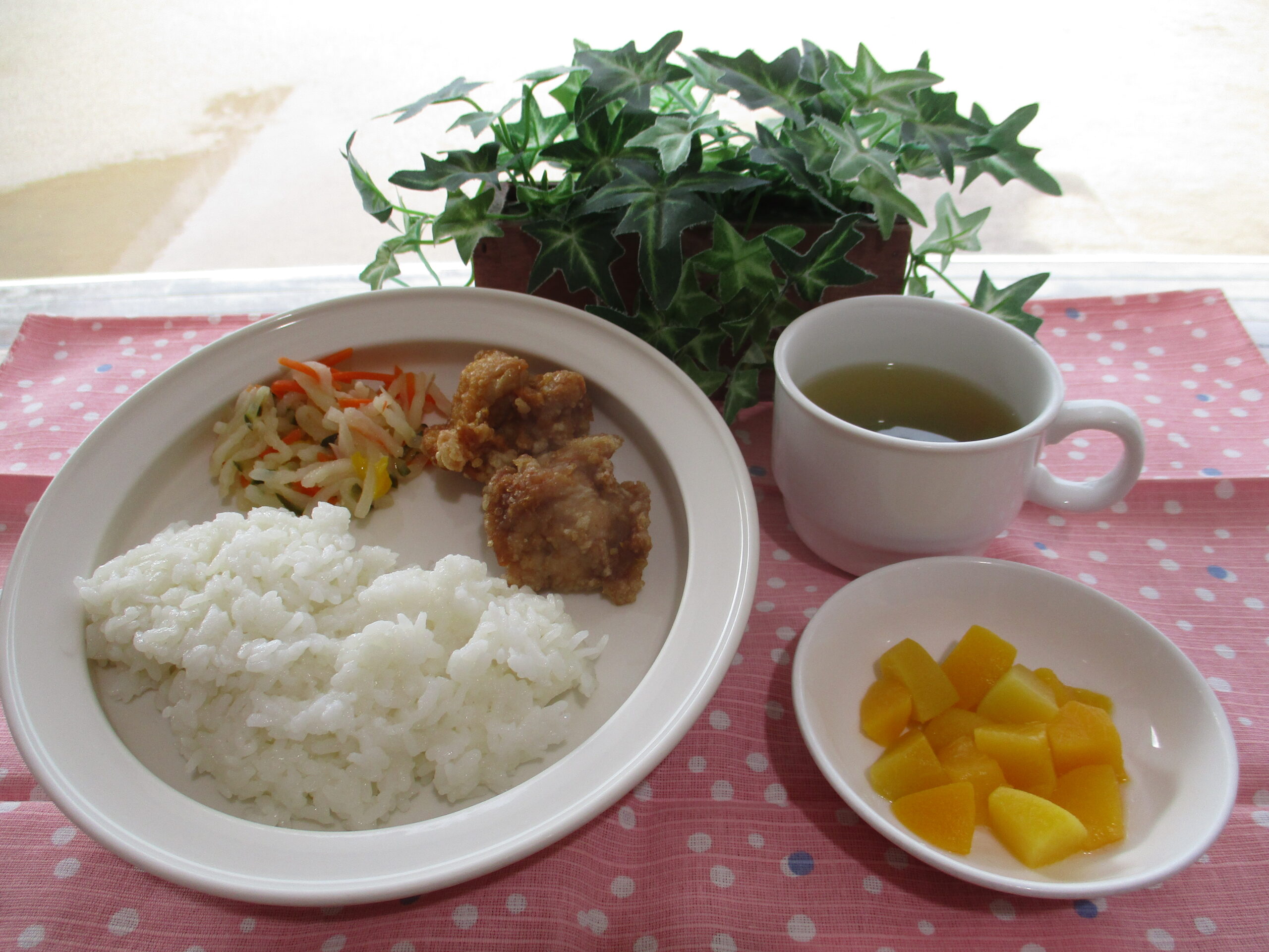 3月19日(木) 公開日: 2026年3月19日更新日: 2026年3月19日著者: aikouminoriカテゴリー: 愛光みのりこども園給食献立 ごはん 鶏肉のから揚げ 切干のさっぱりサラダ みそ汁 もも 関連記事 30 11月30日(水) 麦ごはん みそ汁 鶏肉の唐揚げ キャベツのじゃこサラダ 公開日: 2022年11月30日更新日: 2022年11月30日著者: aikouminoriカテゴリー: 愛光みのりこども園給食献立 04 4月4日(木) ごはん 厚揚げの中華風旨煮 バンサンスー 中華スープ 公開日: 2019年4月4日更新日: 2019年4月4日著者: aikouminoriカテゴリー: 愛光みのりこども園給食献立, 未分類 02 4/2(金) チキンカレーライス フルーツヨーグルト 公開日: 2021年4月2日更新日: 2021年4月2日著者: aikouminoriカテゴリー: 愛光みのりこども園給食献立