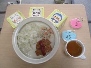 2026年3月23日(月) 公開日: 2026年3月23日更新日: 2026年3月23日著者: aikouカテゴリー: 愛光こども園, 愛光こども園給食献立 *今日の給食* ・ごはん ・ミンチカツ ・春雨マヨサラダ ・みそ汁 *今日のおやつ* ・お茶 ・カル鉄ぶどうゼリー ・星たべよ