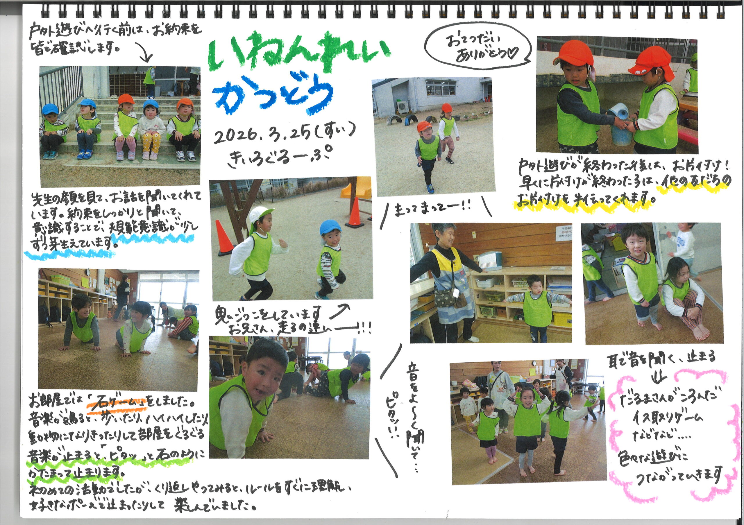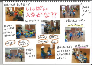 3月3日(火)今日の様子 ひよこ・りす組 赤グループ 青グループ 黄グループ らいおん組 公開日: 2026年3月3日更新日: 2026年3月3日著者: kabutodaiカテゴリー: 兜台保育園園ブログ