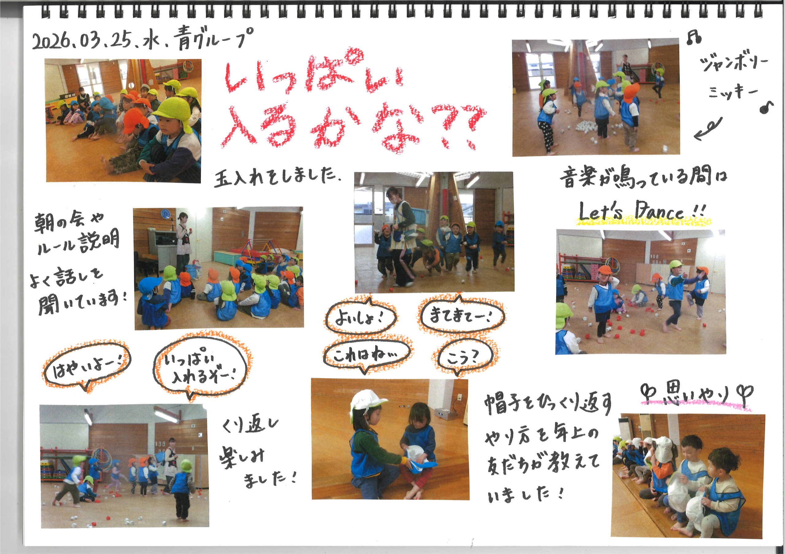3月25日(水)今日の様子 公開日: 2026年3月25日更新日: 2026年3月25日著者: kabutodaiカテゴリー: 兜台保育園園ブログ ひよこ・りす組 赤グループ 青グループ 黄グループ らいおん組 関連記事 12月5日(火)今日の様子 ひよこぐみ りすぐみ うさぎぐみ きりんぐみ ぞうぐみ らいおんぐみ 公開日: 2023年12月5日更新日: 2023年12月5日著者: kabutodaiカテゴリー: 兜台保育園園ブログ 3月8日(水)今日の様子 ひよこぐみ りすぐみ うさぎぐみ 赤グループ 青グループ 黄グループ 公開日: 2023年3月8日更新日: 2023年3月8日著者: kabutodaiカテゴリー: 兜台保育園園ブログ 3月3日(火)今日の様子 ひよこ・りす組 赤グループ 青グループ 黄グループ らいおん組 公開日: 2026年3月3日更新日: 2026年3月3日著者: kabutodaiカテゴリー: 兜台保育園園ブログ
