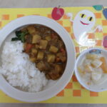 *今日の給食* ・チキンカレーライス ・フルーツヨーグルト *今日のおやつ* ・お茶 ・とりそぼろおにぎり