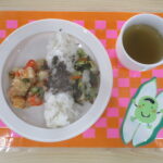 *今日の給食* ・ごはん ・厚揚げとじゃがいものそぼろ煮 ・青菜のお浸し ・みそ汁 ・いりこふりかけ *今日のおやつ* ・牛乳 ・ヨーグルトケーキ