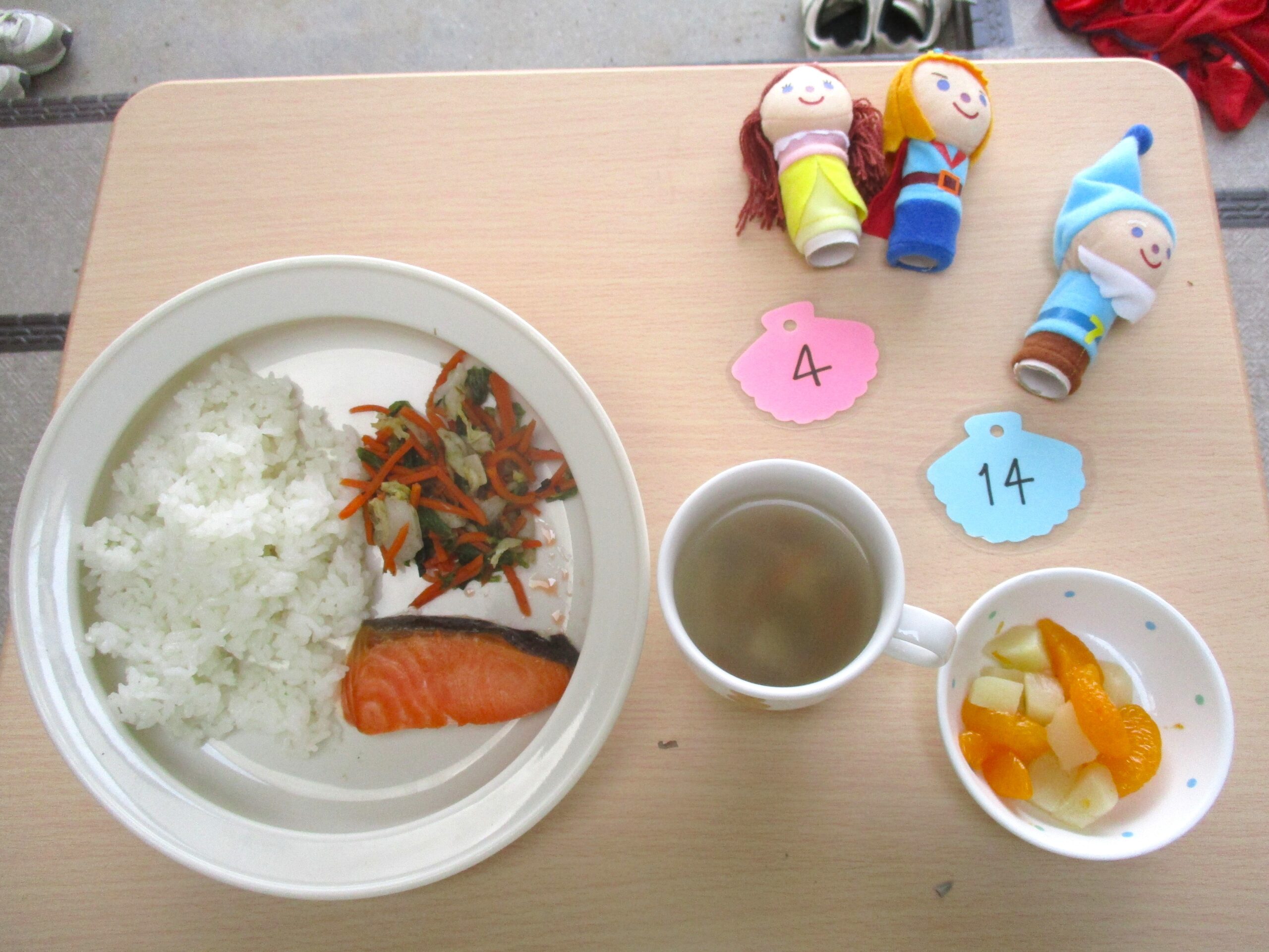 2026年4月14日(火) 公開日: 2026年4月14日更新日: 2026年4月14日著者: aikouカテゴリー: 愛光こども園, 愛光こども園給食献立 *今日の給食* ・ごはん ・サケの塩焼き ・おかか和え ・けんちん汁 ・フルーツミックス *今日のおやつ* ・お茶 ・きつねおにぎり