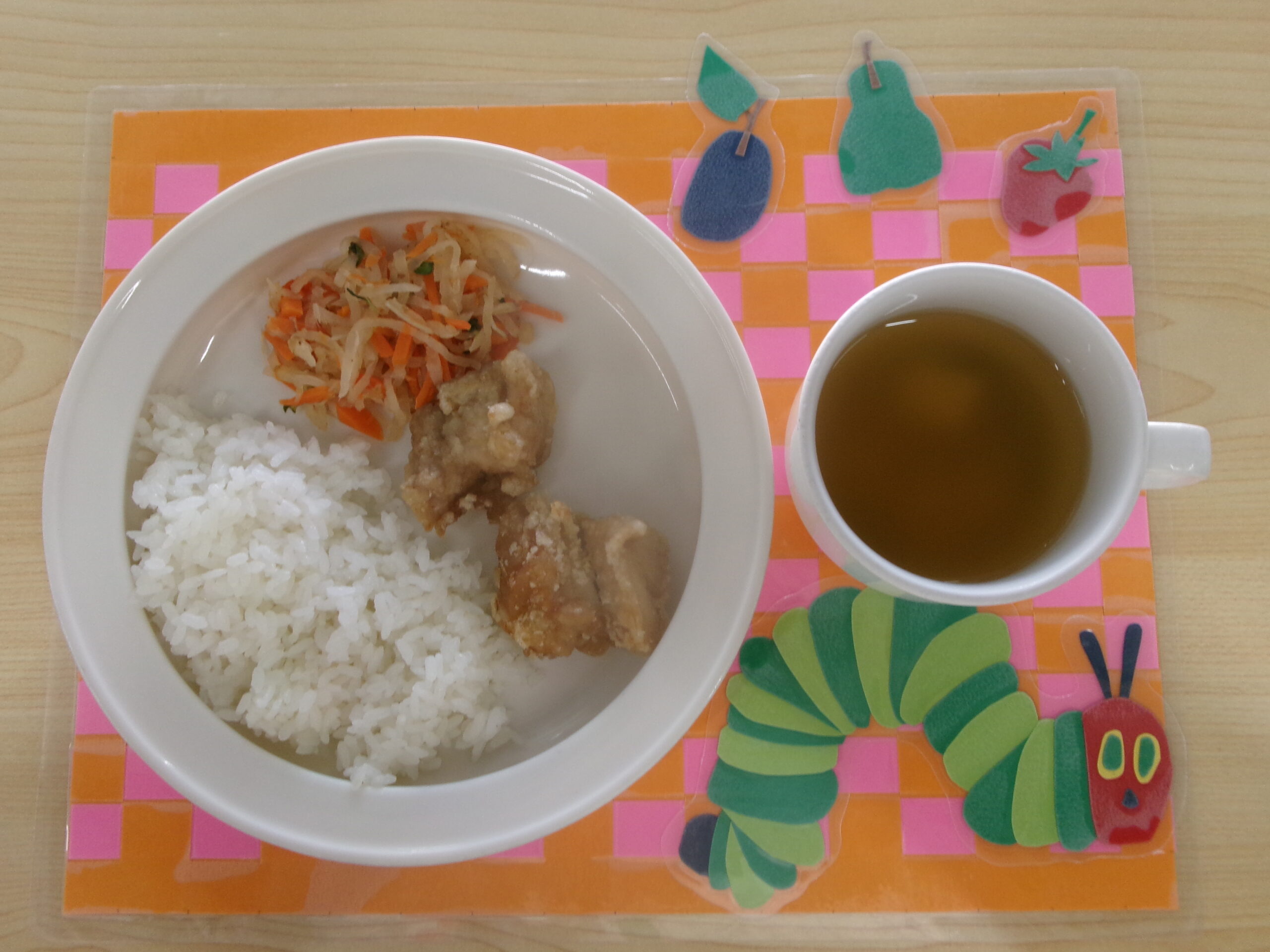 4月16日(木) 公開日: 2026年4月16日更新日: 2026年4月16日著者: kabutodaiカテゴリー: 兜台保育園給食献立 主食・・・ごはん 主菜・・・鶏肉の唐揚げ 副菜・・・大根サラダ お汁・・・みそ汁 関連記事 27 7月27日(月) 主食・・・ご飯 主菜・・・切干大根とツナの煮物 副菜・・・オクラのなめ茸和え 汁物・・・みそ汁 公開日: 2020年7月27日更新日: 2020年7月27日著者: kabutodaiカテゴリー: 兜台保育園給食献立, 未分類 2月2日(火) 主食・・・鬼っこごはん 主菜・・・いわしの竜田揚げ 副菜・・・青菜のお浸し 汁もの・・・根菜汁 公開日: 2021年2月2日更新日: 2021年2月2日著者: kabutodaiカテゴリー: 兜台保育園給食献立 6月2日(木) 主食・・・ごはん 主菜・・・鶏肉のバーベキュー焼き 副菜・・・ひじきのポテトサラダ お汁・・・みそ汁 公開日: 2022年6月2日更新日: 2022年6月2日著者: kabutodaiカテゴリー: 兜台保育園給食献立