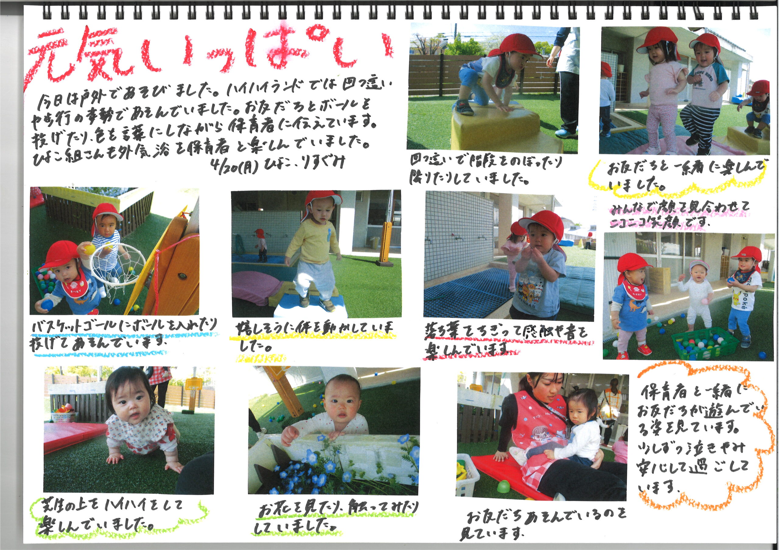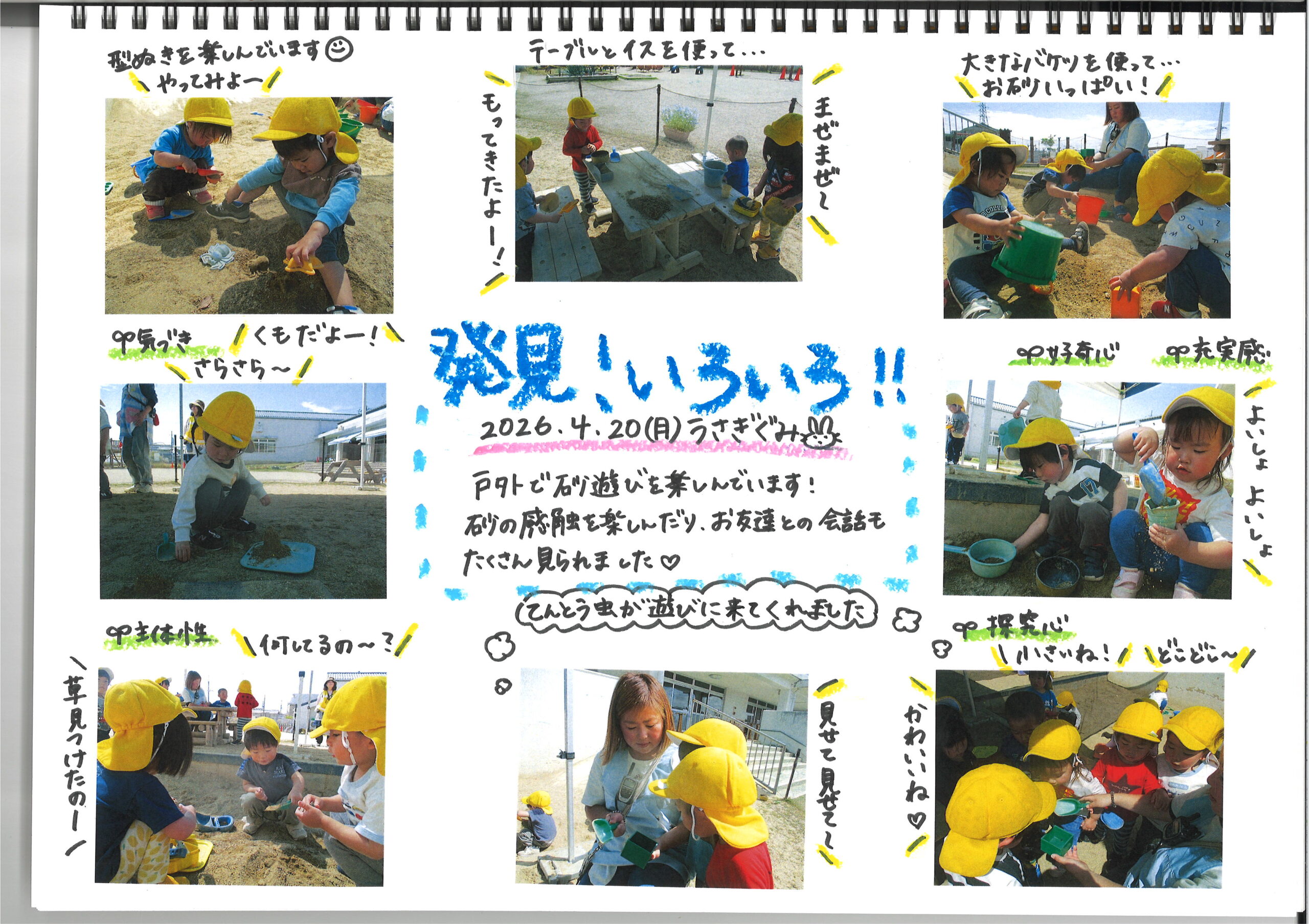 4月20日(月)今日の様子 公開日: 2026年4月20日更新日: 2026年4月20日著者: kabutodaiカテゴリー: 兜台保育園園ブログ ひよこ・りす組 うさぎ組 きりん・ぞう・らいおん組 関連記事 9月18日(木)今日の様子 ひよこ組・りす組 うさぎ組 きりん組 ぞう組 らいおん組 公開日: 2025年9月18日更新日: 2025年9月18日著者: kabutodaiカテゴリー: 兜台保育園園ブログ 1月21日(木) 今日の様子 ひよこ組 りす組 うさぎ組 異年齢(きりん組・ぞう組・らいおん組) 公開日: 2021年1月21日更新日: 2021年1月21日著者: kabutodaiカテゴリー: 兜台保育園園ブログ 10月21日(水) 今日の様子 ひよこ組 園内を散歩しました。今日は低月齢児は 朝寝をする前にお散歩しました。 他の子はらいおん組のマーチングが始まる前に テラスに座って待っていました。 始ま […] 公開日: 2020年10月21日更新日: 2020年10月21日著者: kabutodaiカテゴリー: 兜台保育園園ブログ